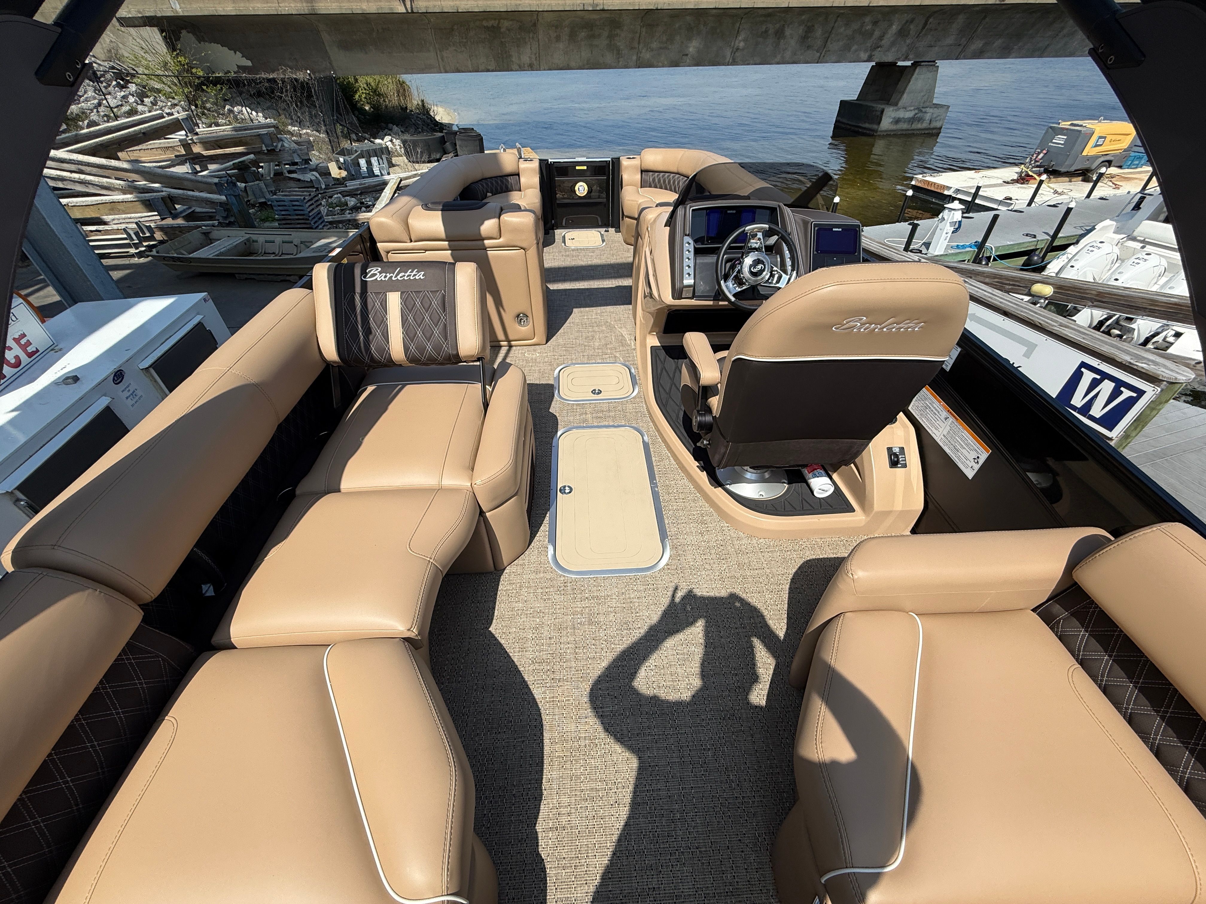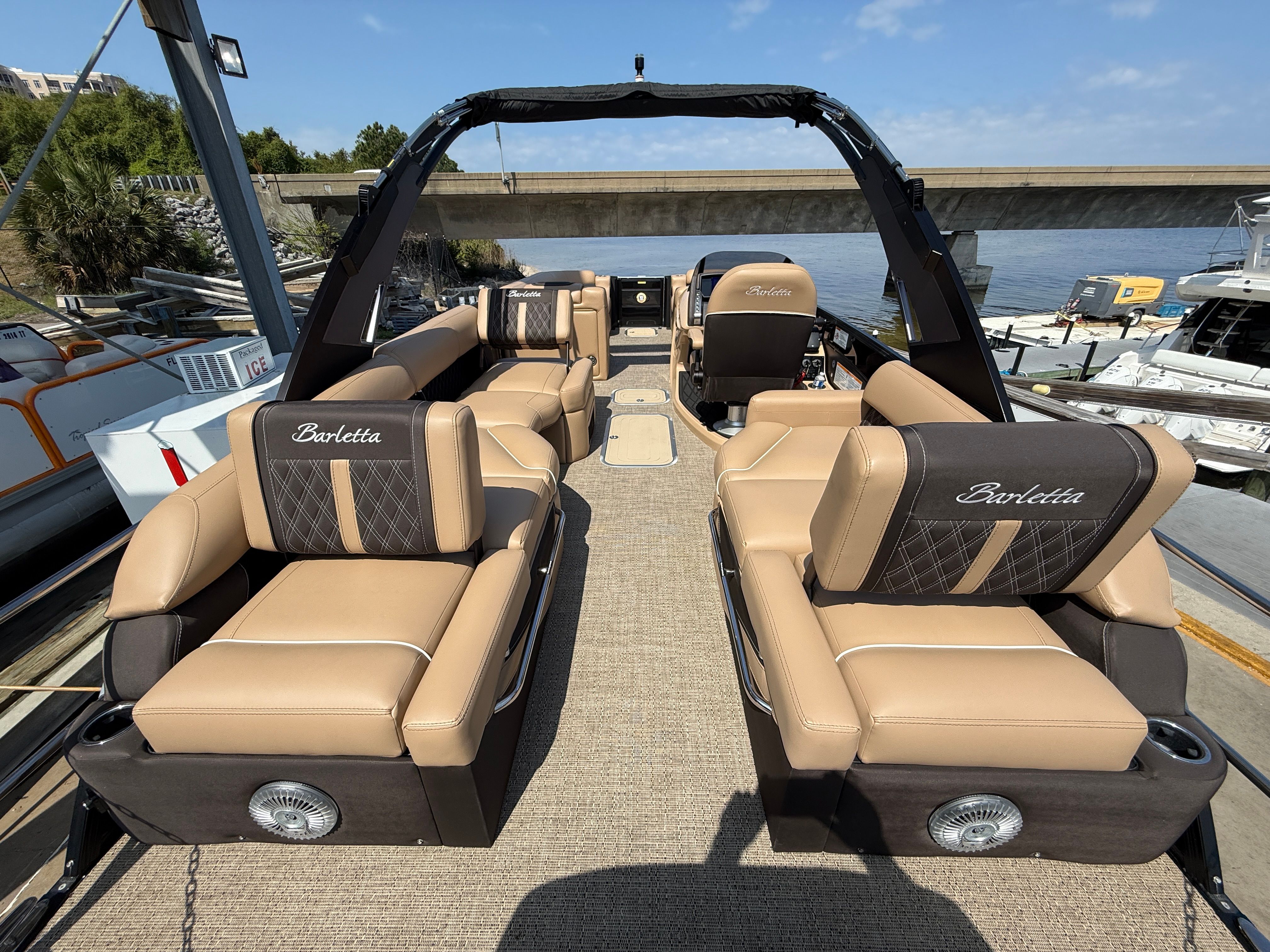 The 2025 Barletta Lusso L25MAT is a used pontoon boat that measures an impressive 28.25 feet in length, providing ample space for entertaining, lounging, and enjoying the water. With its sleek design and premium construction, this Barletta boat for sale is built to turn heads and deliver lasting memories. The Lusso L25MAT’s spacious deck layout ensures everyone on board has room to relax, socialize, and soak up the sun, making it ideal for large gatherings or intimate outings.