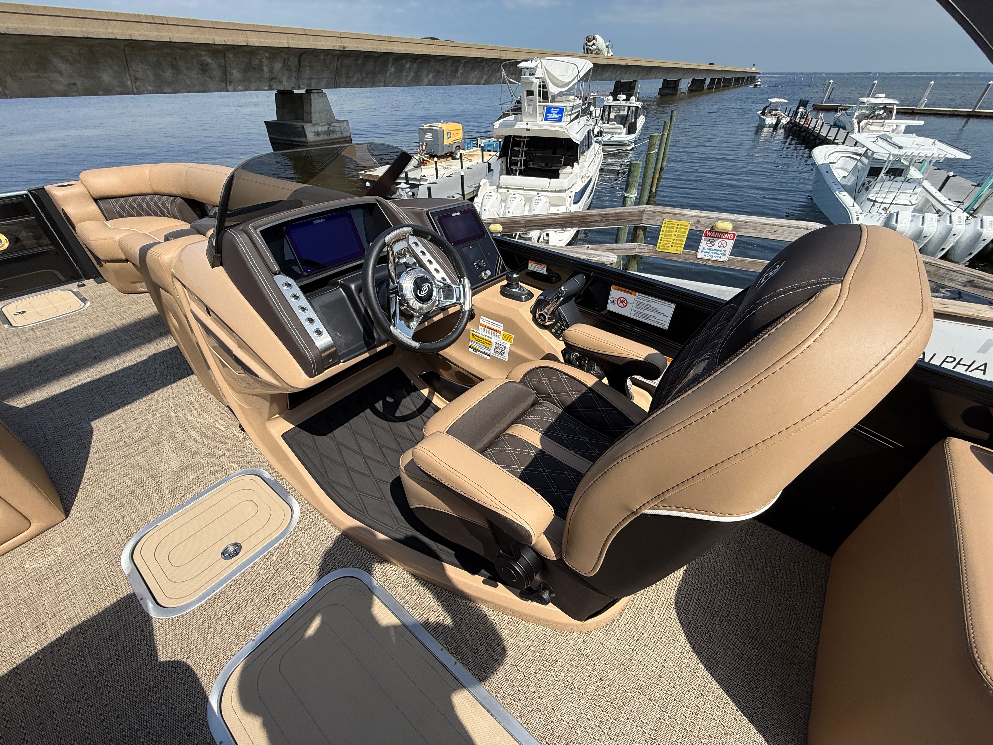 Check out this 2025 Barletta Lusso Twin Engine L25MAT powered with twin Mercury 400 V10 Verado engines with only 58 hours of use! This bad boy is a phenominal opportunity to buy a used boat for way less than new! This model was just introduced in 2025 and has been a hit! Blacked out sides and railing with Amore Tan seats make this thing stunning! Priced at $279,900, this boat is a deal! Call today to set up an appointment or to make an offer before she is gone! Joystick, Arch and much more! Buy a lightly used boat for way less than a new one!