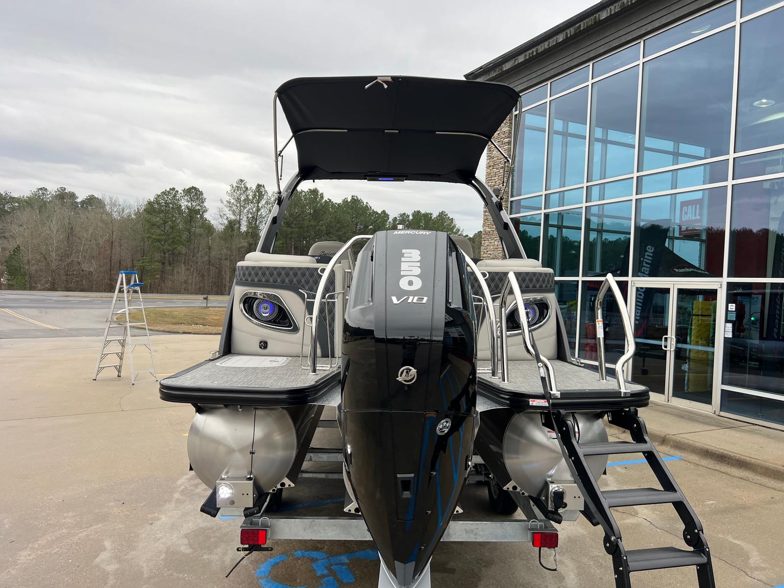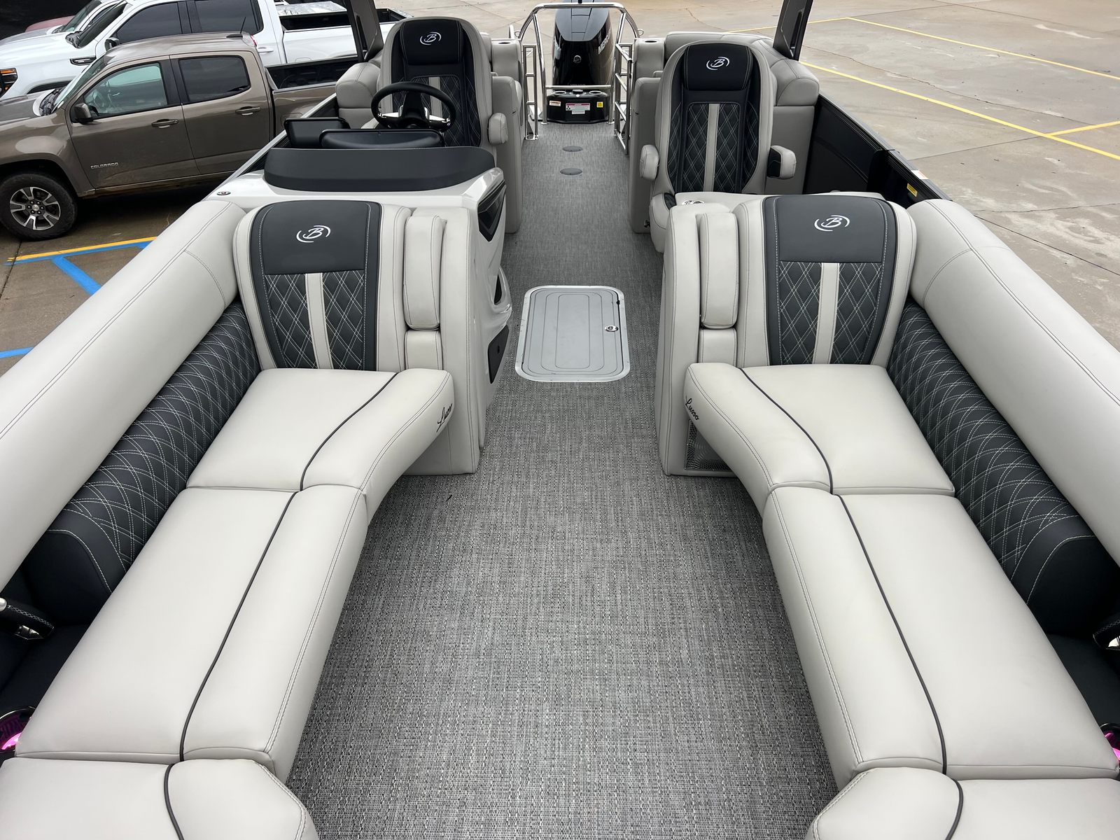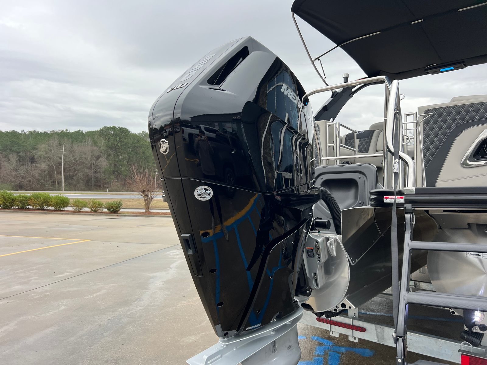 Power and precision are at the heart of the Barletta Lusso L25QCSSA’s performance. Equipped with a single Mercury (D) 350L V10 Verado engine, this pontoon delivers an impressive 350 horsepower, ensuring exhilarating acceleration and smooth cruising. The Mercury Digital Pre-Rig for V10 and the expertly rigged engine with a V10 prop guarantee seamless operation and optimal efficiency. Whether you are gliding across the water at a leisurely pace or seeking thrilling speeds, the Lusso L25QCSSA offers a dynamic and responsive ride that will satisfy even the most demanding boating enthusiasts.
