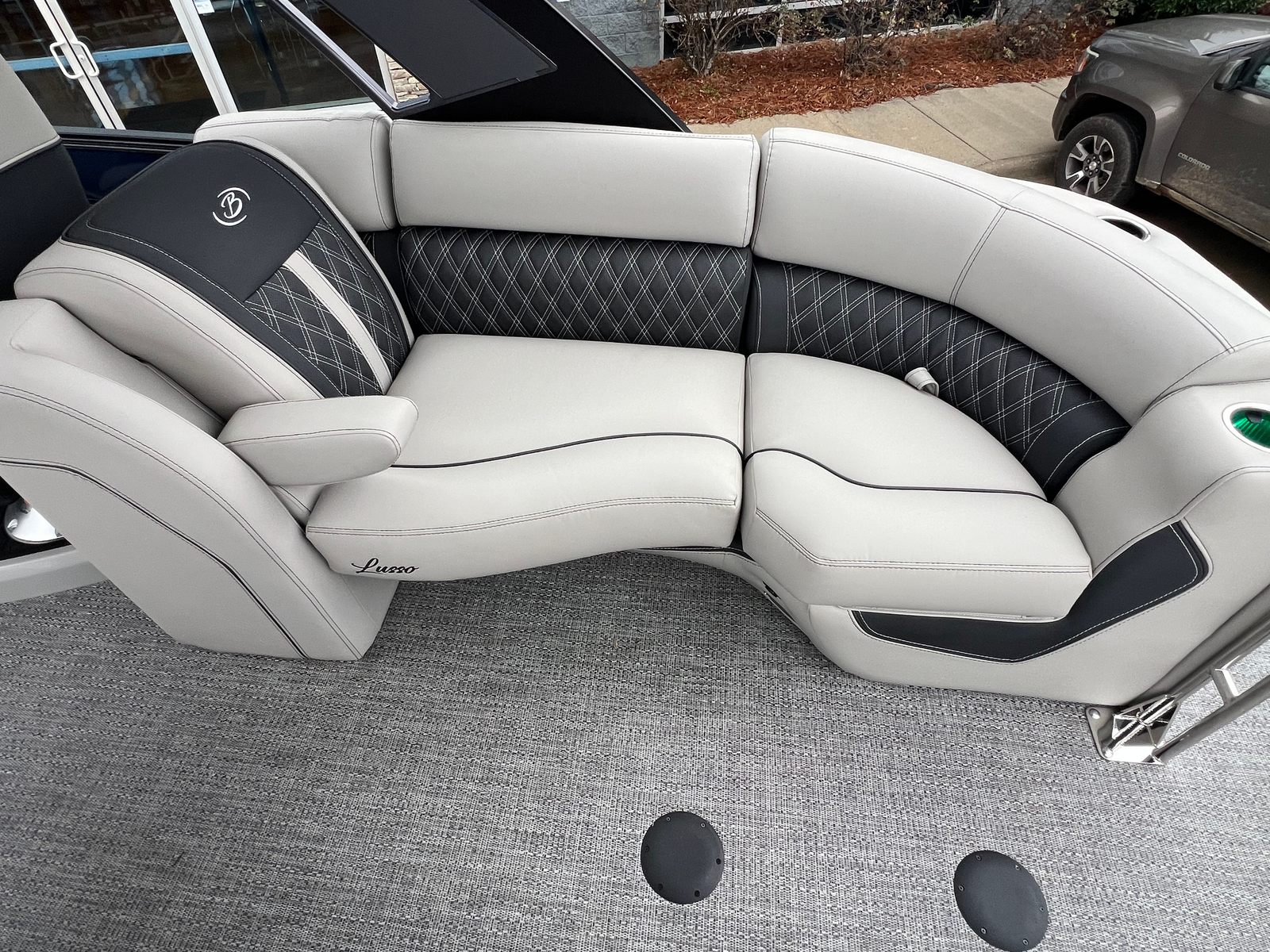 The 2026 Barletta Lusso L25QCSSA is a brand-new pontoon boat that stretches an impressive 27.5 feet in length, offering ample space for entertaining and relaxing. As a flagship model from Barletta, this boat showcases the brand’s commitment to quality craftsmanship and modern design. The Lusso L25QCSSA’s sleek profile is accentuated by its Blue Sapphire sweep color, complemented by a Gray Moonstone accent, creating a sophisticated and eye-catching presence on the water. Whether you are cruising a calm lake or hosting a lively gathering, this Barletta boat for sale stands out as the ultimate choice for discerning boaters.