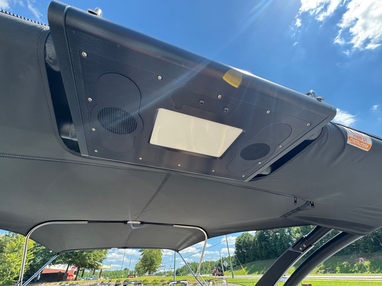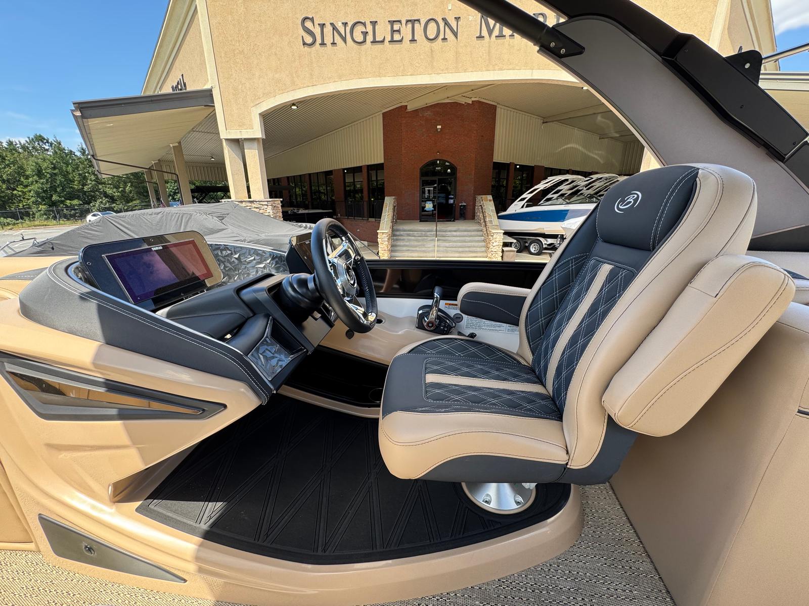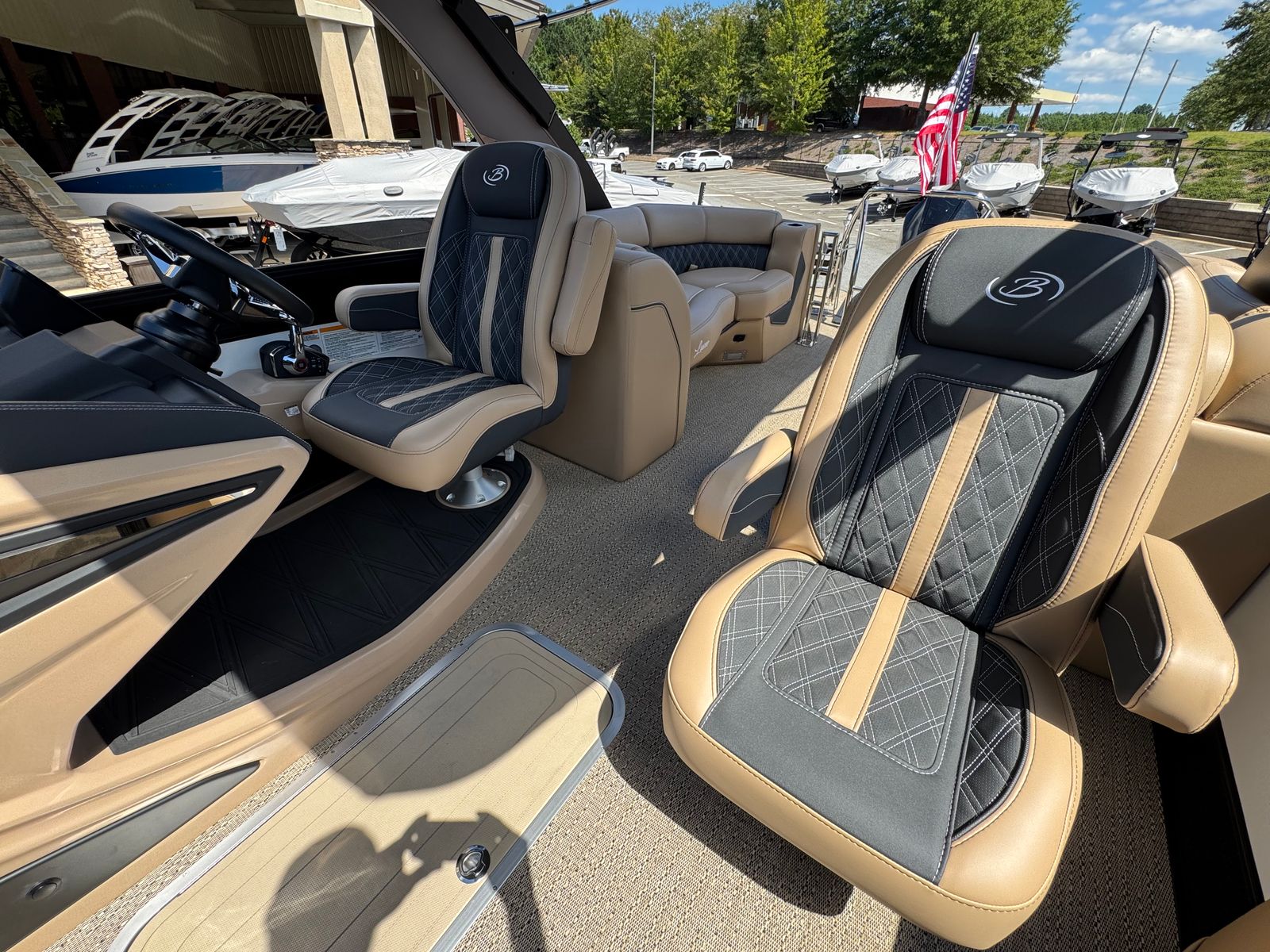 Step aboard and experience the thoughtful features that set the Barletta Lusso L25QCSSA apart. The flooring is finished in Amore Tan, offering both durability and a touch of elegance underfoot. The furniture, upholstered in Carmella Tan with Onyx accents, creates a warm and inviting atmosphere, perfect for relaxing or entertaining guests. The Black Diamond sweep color and Winter White accent color add a sophisticated flair to the boat’s overall aesthetic, while the Blackout Package Lusso railskin package enhances its modern appeal.For added protection and longevity, the Metal Jacket Protectant shields the boat’s exterior from the elements. Enjoy ambient evenings with white underdeck and underwater exterior lighting, creating a captivating glow that enhances nighttime outings. The boat is made water-ready with a stainless steel prop, ensuring optimal performance and reliability from day one. Digital gauges provide clear and accurate information at a glance, keeping you informed and in control throughout your journey.