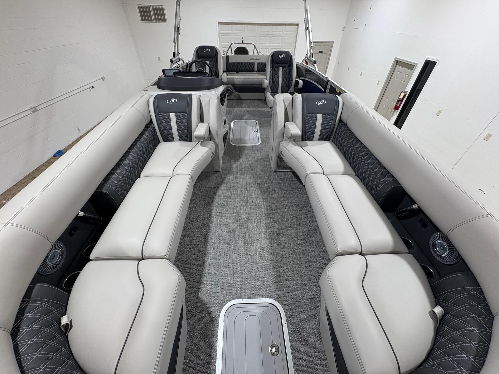 At the heart of the Barletta Lusso L25UC is a powerful Mercury 300L Verado V8 engine, delivering an exhilarating 300 horsepower. This advanced outboard engine is renowned for its smooth, quiet operation and robust performance, making it ideal for both leisurely cruises and high-speed adventures. The Mercury Digital DTS Pre-Rig for VERADO engines with Vessel Link ensures seamless integration and precise control, while the hydraulic and power assist steering provides effortless handling. Whether you are navigating calm lakes or exploring open waters, this pontoon boat offers a responsive and enjoyable ride every time.