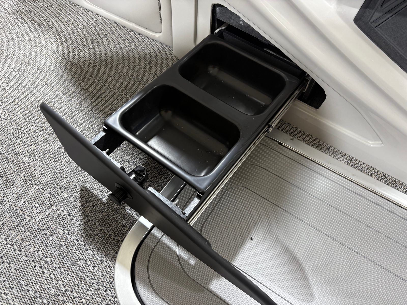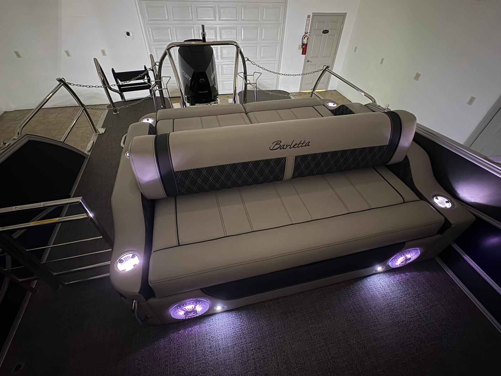 Practicality is at the core of the Barletta Lusso L25UC’s design. The spacious deck provides plenty of room for storage, making it easy to bring along all your gear for a day of fun. The boat’s length and layout facilitate easy docking and maneuvering, even in crowded marinas or tight spaces. The efficient Mercury 300L Verado V8 engine is designed for reliability and fuel efficiency, helping you make the most of every outing without worrying about frequent refueling stops.The durable flooring and protective exterior treatments ensure that your investment remains in top condition, season after season. The stainless steel safety stanchions with chains offer added peace of mind, especially when children or pets are on board. The exterior lighting not only enhances the boat’s appearance but also improves visibility and safety during nighttime excursions.
