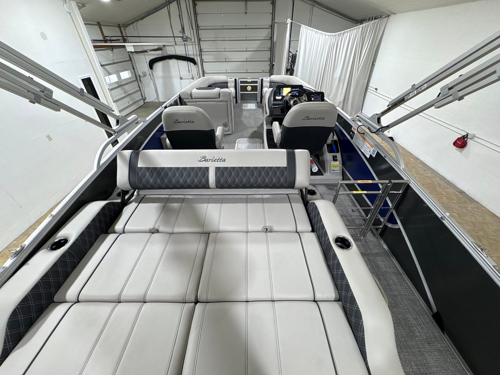 The 2026 Barletta Lusso L25UC is a 27.5-foot pontoon boat that embodies sophistication and versatility. As a new model, it showcases the latest advancements in pontoon design, making it a top choice for boating enthusiasts who demand the best. With its impressive length, this Barletta boat for sale offers ample space for entertaining, relaxing, and enjoying unforgettable days on the water. The Lusso L25UC’s sleek lines and modern color palette, featuring a Gray Moonstone sweep and Bohemian Blue accents, ensure that it turns heads wherever it goes.