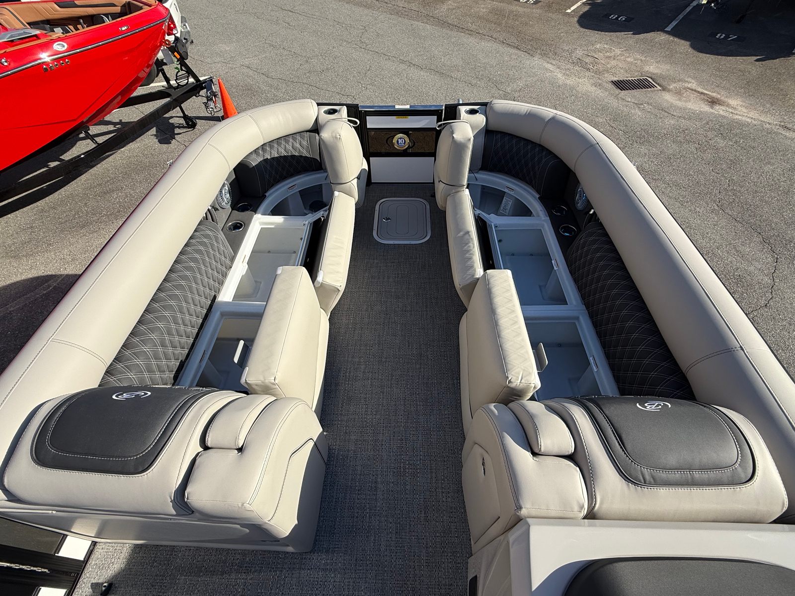 Owning the Barletta Lusso L25UC pontoon boat means embracing a lifestyle of fun, relaxation, and social connection. The spacious deck layout is perfect for hosting gatherings, whether you’re enjoying a sunset cruise, celebrating a special occasion, or simply spending quality time with loved ones. The luxurious seating and ample room allow everyone to stretch out and enjoy the ride, while the stylish design creates an inviting atmosphere. The powerful Mercury 300L Verado V8 engine ensures you can explore new destinations, participate in watersports, or simply cruise at your own pace. With advanced steering and digital controls, you’ll feel confident and in command, making every trip enjoyable and stress-free.