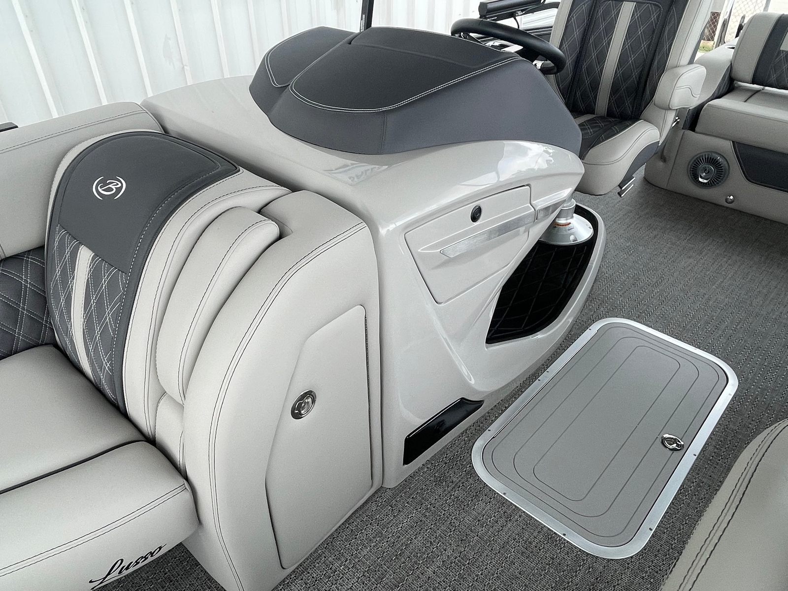 The 2025 Barletta Lusso L25UC is a new, meticulously crafted pontoon that measures an impressive 27.5 feet in length. This spacious platform offers ample room for relaxation, socializing, and adventure, making it ideal for both intimate gatherings and lively parties on the water. The Lusso series is renowned for its attention to detail, and the L25UC model exemplifies this with its sophisticated design and premium finishes. Whether you are hosting friends for a sunset cruise or enjoying a peaceful day with family, this Barletta boat for sale delivers an unmatched boating experience.