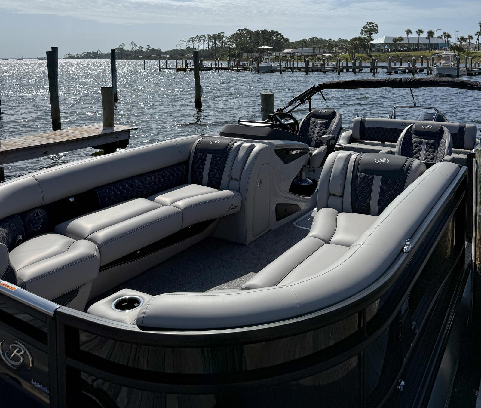 The 2026 Barletta Lusso L25UC pontoon boat for sale is a remarkable blend of style, performance, and innovation. With its Mercury 300L Verado V8 engine, striking Black Diamond accents, Blackout Package Lusso railskin, Marquesan Gray with Onyx furniture, Amore Gray flooring, Coastal Edition Lusso features, and advanced digital controls, this boat offers everything you need for unforgettable days on the water. Whether you’re searching for a Barletta boat for sale or the perfect pontoon to elevate your boating lifestyle, the Lusso L25UC delivers in every way.Don’t miss your chance to own this exceptional pontoon boat and experience the ultimate in comfort, versatility, and fun. Contact your local dealer today to learn more about the Barletta Lusso L25UC and start your next adventure on the water!