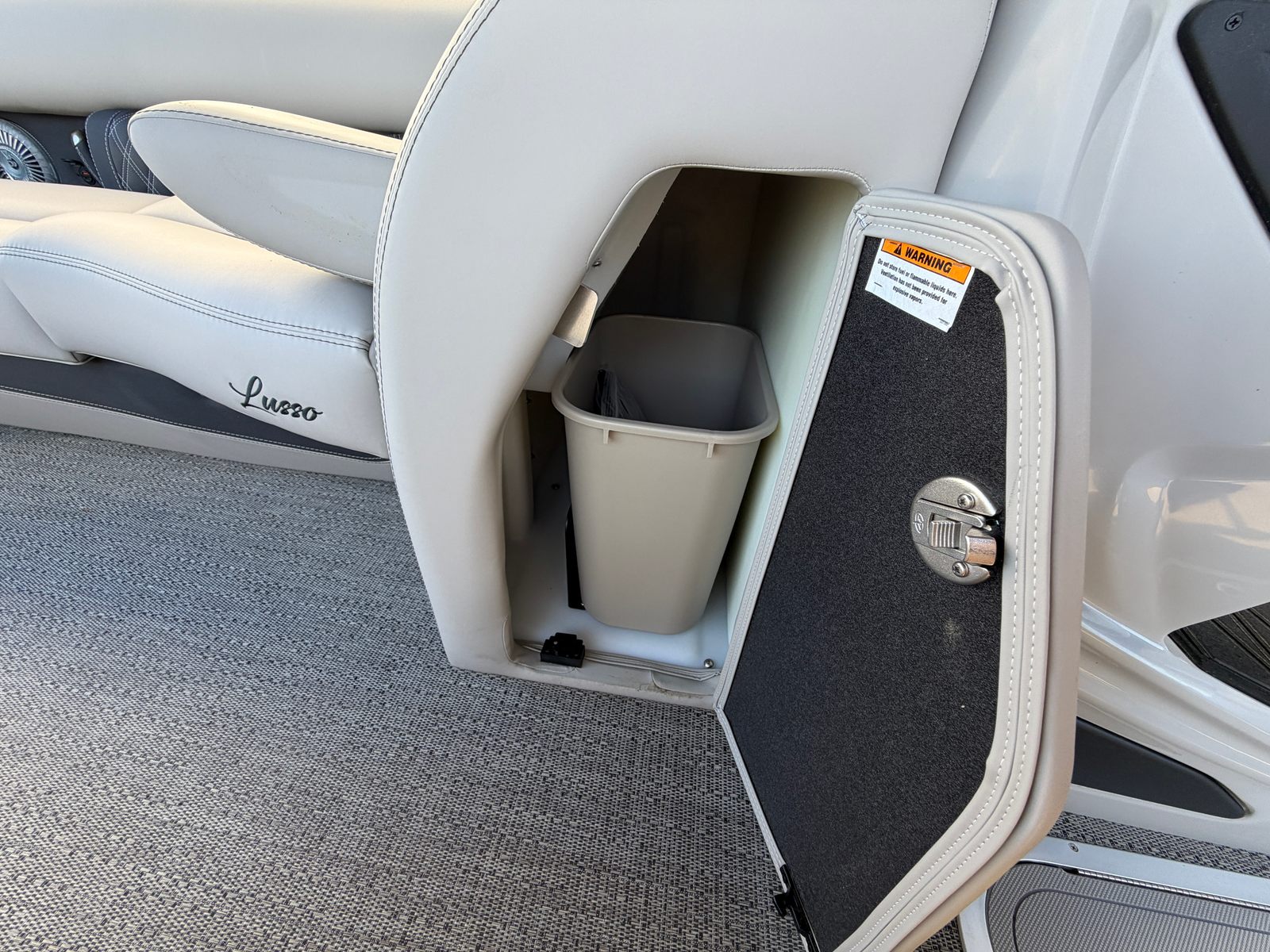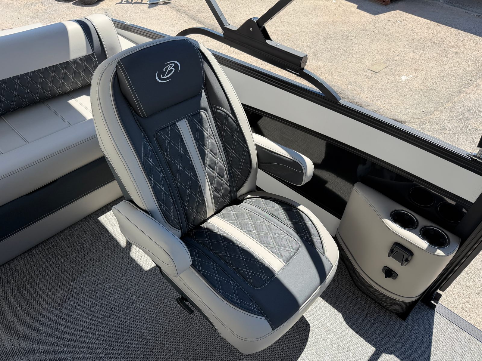 Powering the Barletta Lusso L25UC is a single Mercury (D) 300L Verado V8 engine, delivering a robust 300 horsepower. This engine is renowned for its smooth acceleration, quiet operation, and impressive fuel efficiency, making it ideal for both leisurely cruises and spirited rides across the lake. The Mercury Digital DTS Pre-Rig for VERADO engines with Vessel Link ensures seamless integration and precise control, while the hydraulic and power assist steering provides effortless maneuverability. Whether you’re navigating tight marinas or open waters, the Lusso L25UC offers a responsive and enjoyable driving experience that sets it apart from other pontoon boats for sale.