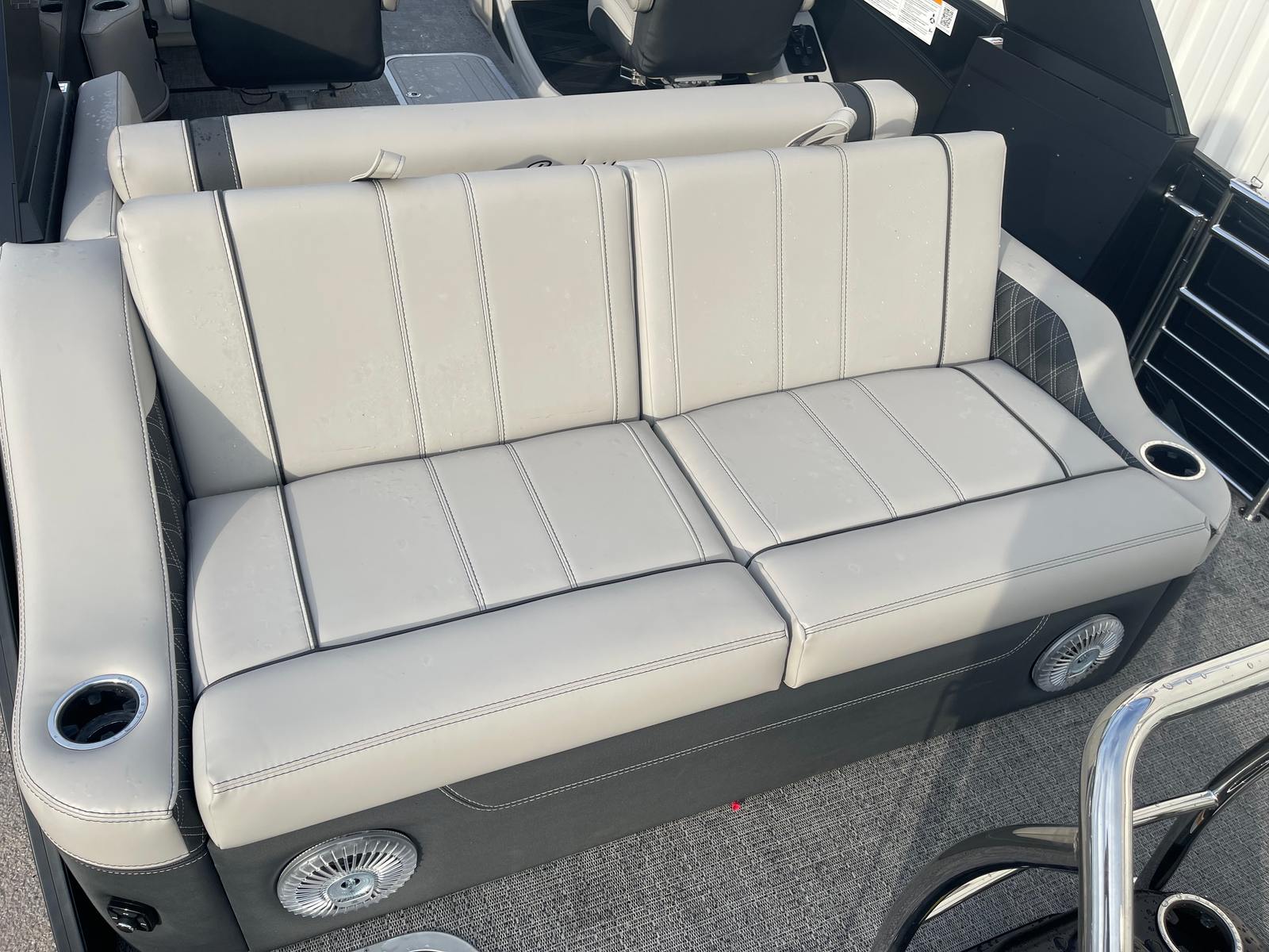 At the heart of the Barletta Lusso L25UCA is a powerful 400-horsepower engine, ensuring that every journey is smooth, responsive, and exhilarating. This pontoon boat is engineered for optimal performance, offering swift acceleration and effortless cruising across lakes, rivers, and coastal waters. The robust engine provides ample power for towing water toys, reaching your favorite destinations quickly, and handling a variety of water conditions with confidence. Whether you’re gliding across calm waters or navigating a lively lake, the Lusso L25UCA’s performance capabilities make every trip enjoyable and stress-free.