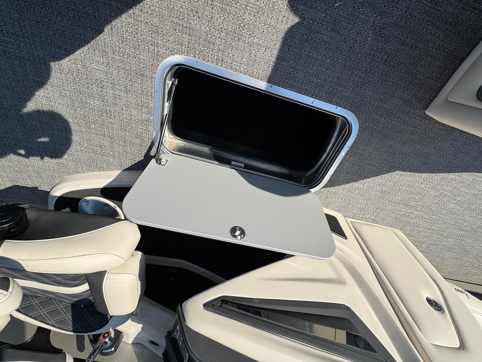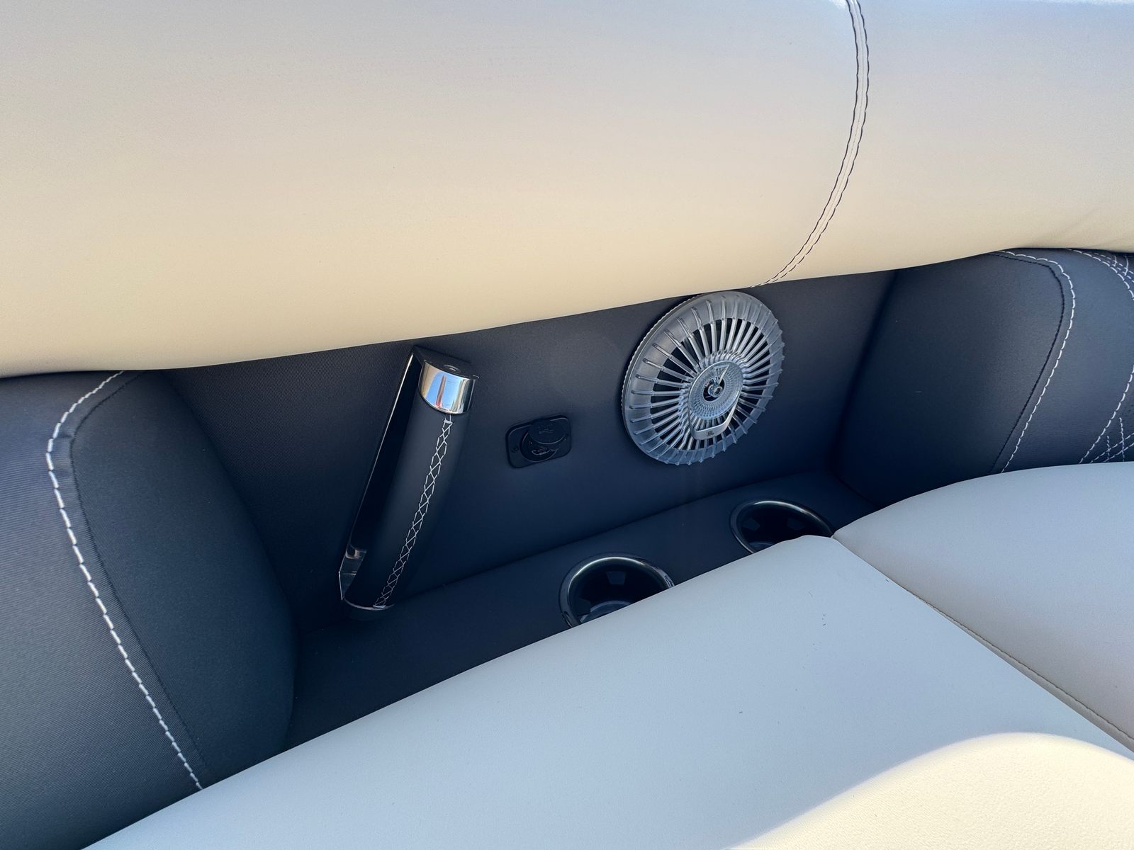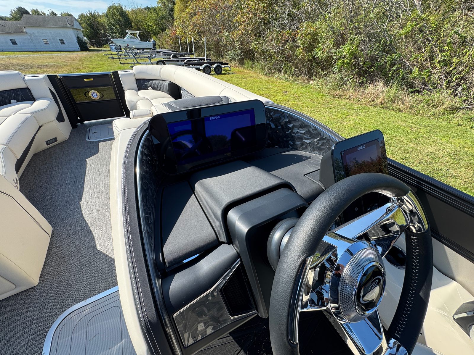 The Barletta Lusso L25UCA is designed with practicality in mind, making ownership both convenient and enjoyable. The ample storage options allow you to stow away gear, water toys, and personal items with ease, keeping the deck clutter-free and organized. The sturdy stainless steel safety stanchions with chains offer peace of mind, especially when children or pets are onboard. Docking is simplified thanks to the boat’s responsive handling and manageable length, making it easy to maneuver in tight spaces or busy marinas. The efficient Mercury V10 engine helps maximize fuel economy, so you can spend more time enjoying the water and less time refueling.