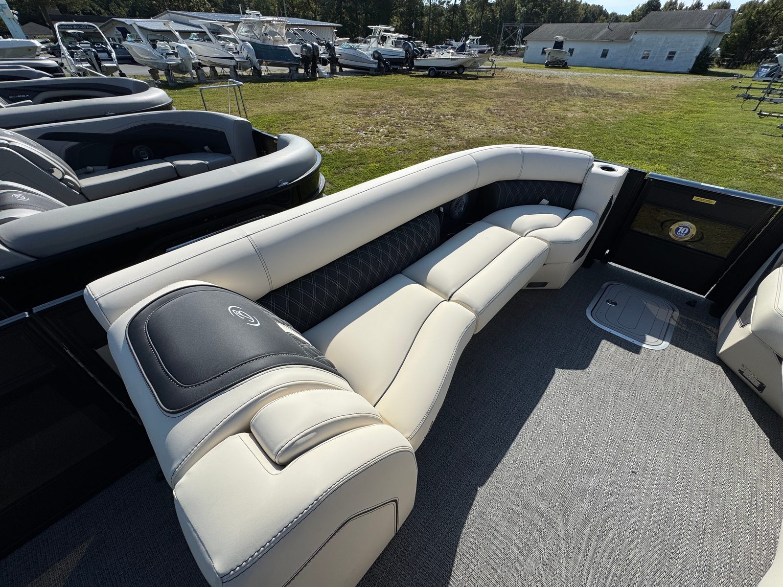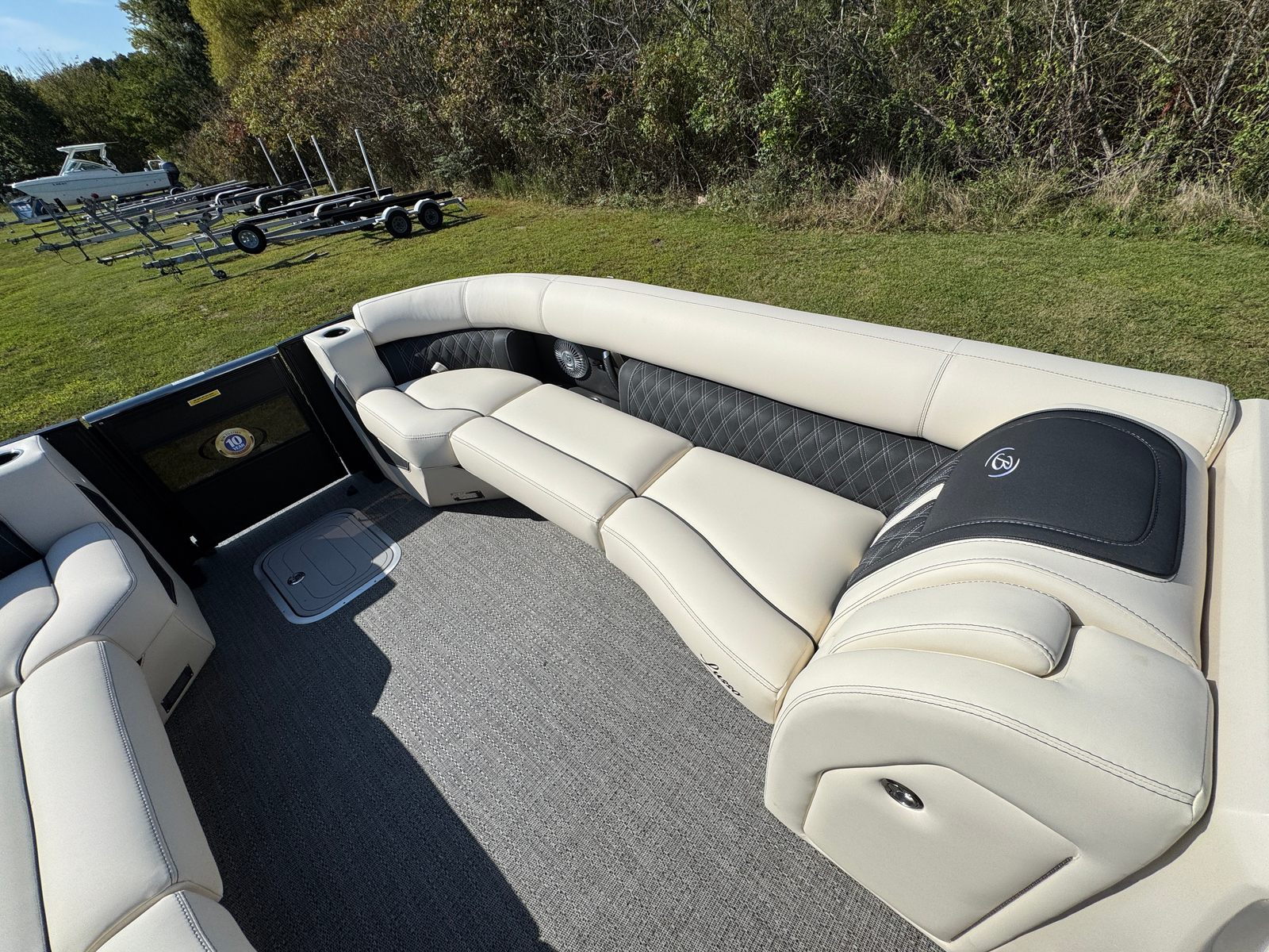 Owning the Barletta Lusso L25UCA means embracing a lifestyle of fun, relaxation, and social connection. The spacious layout is perfect for hosting family and friends, offering plenty of room to stretch out, socialize, and enjoy the sunshine. The comfortable seating and stylish furniture make every moment onboard a pleasure, whether you’re lounging with a book or sharing laughter over snacks and drinks. The advanced engine technology ensures a quiet, smooth ride, allowing you to focus on making memories rather than worrying about performance. With its eye-catching design and luxurious finishes, this pontoon boat is sure to impress guests and provide endless enjoyment on the water.