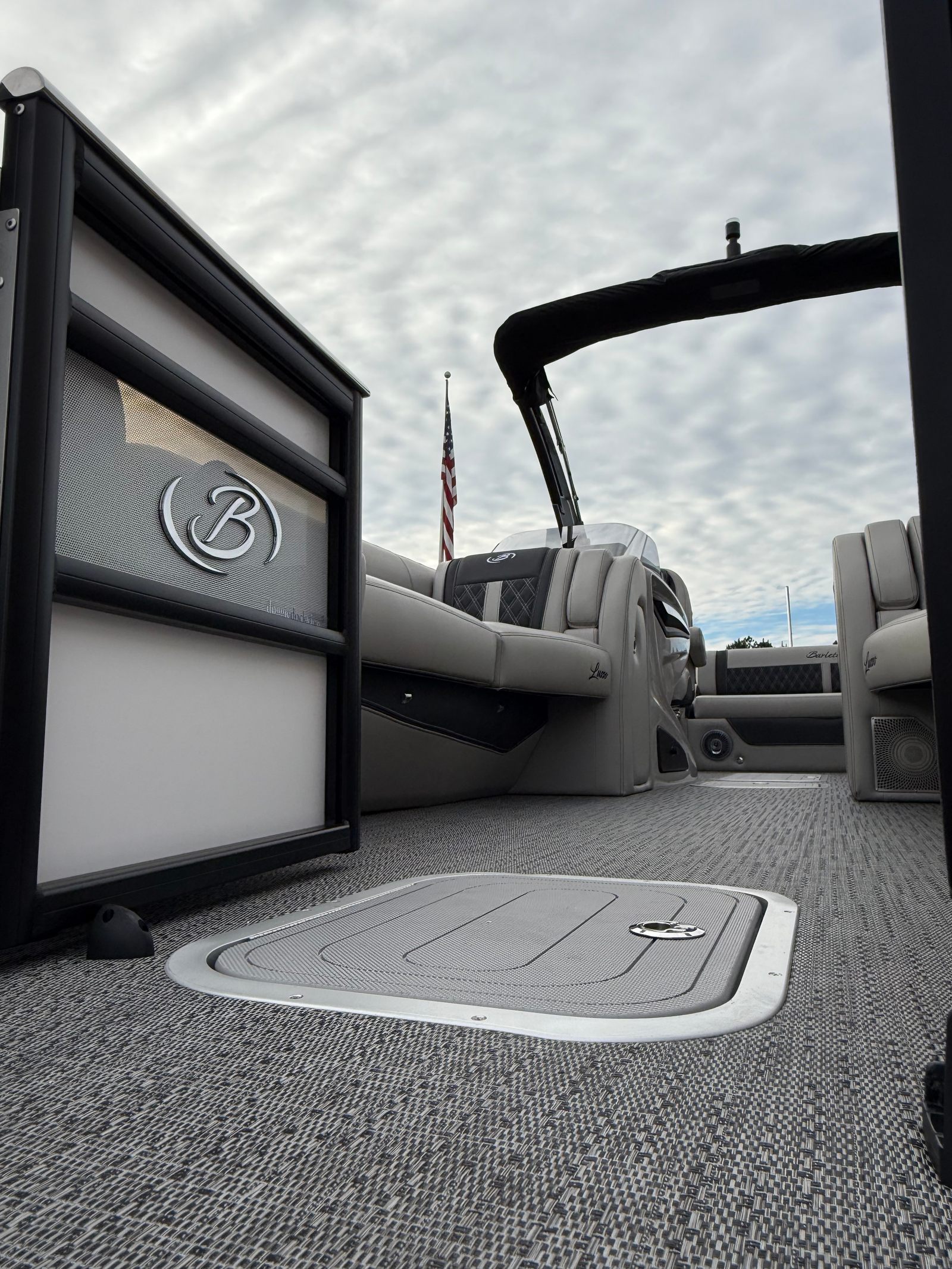 Beyond its luxurious features, the Lusso L25UCAT is engineered for practical convenience. The generous length and open layout provide plenty of storage for gear, water toys, and personal items, keeping the deck clutter-free and organized. The twin engine configuration not only boosts performance but also simplifies docking and maneuvering, making it easy for both seasoned captains and newcomers to handle.Fuel efficiency is enhanced by the advanced Mercury engines, allowing you to spend more time on the water and less at the pump. The durable flooring and high-quality materials ensure longevity and easy maintenance, so your pontoon stays looking pristine season after season.