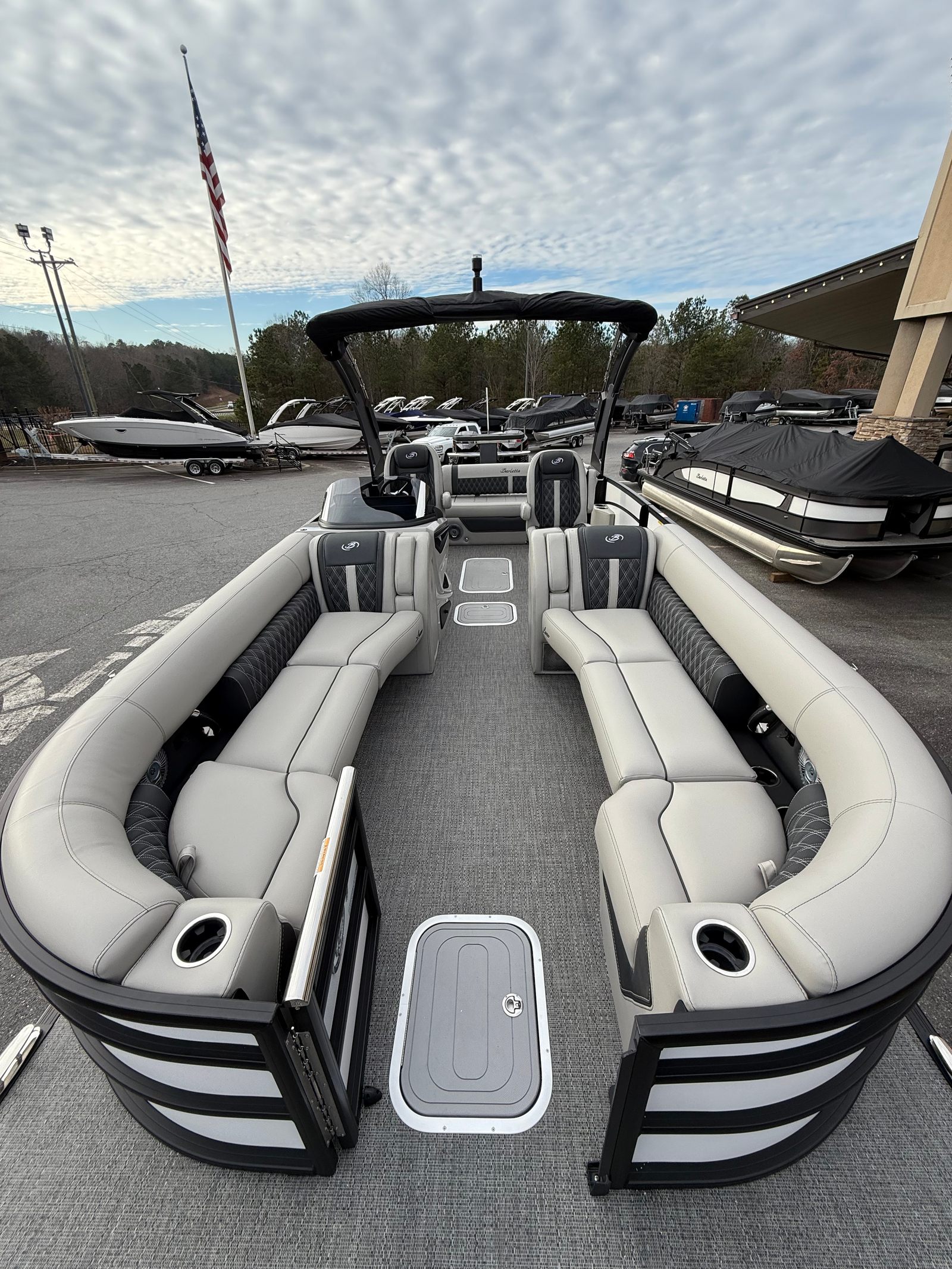 The Barletta Lusso L25UCAT is a 2026 model pontoon boat, measuring an impressive 28.25 feet in length. This new pontoon is crafted for those who appreciate spaciousness, style, and versatility. Its sleek profile and contemporary design ensure you’ll turn heads at every marina and lakefront. Whether you’re planning a relaxing day with family or an energetic outing with friends, this Barletta boat for sale offers the perfect platform for leisure and entertainment.