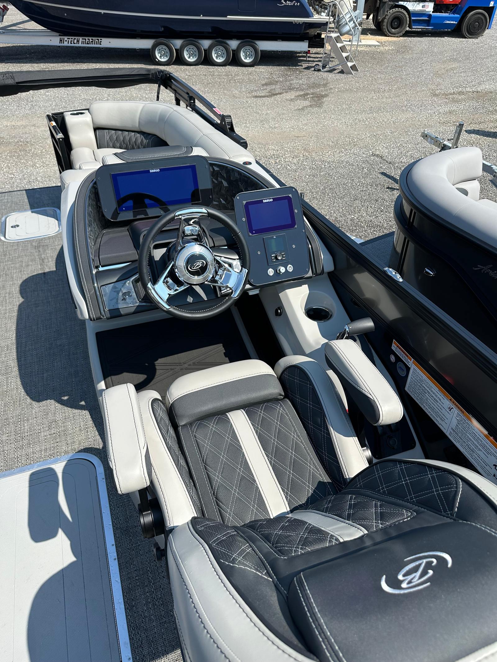 At the heart of the Barletta Lusso L25UE is a powerful Mercury 300L Verado V8 engine, delivering an exhilarating 300 horsepower for smooth, responsive, and efficient cruising. Whether you are gliding across calm waters or powering through a busy waterway, this pontoon offers exceptional handling and performance. The Mercury Digital DTS Pre-Rig for VERADO engines with Vessel Link ensures seamless integration and precise control, while hydraulic and power assist steering make maneuvering effortless. Digital gauges provide real-time data at your fingertips, allowing you to monitor performance and enjoy peace of mind on every journey. The rigging is expertly completed to make the boat water-ready, featuring a stainless steel prop for durability and optimal propulsion.