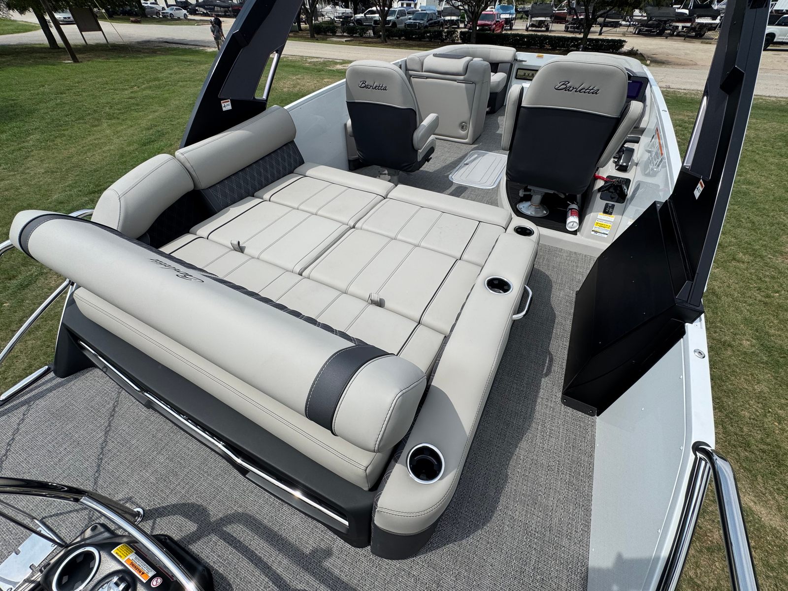 Step aboard the Reserve Leggera 23UCA and you are greeted by a world of comfort and style. The flooring features the luxurious Amore Gray finish, offering both durability and a contemporary aesthetic that complements the boat’s overall design. The furniture is upholstered in Marquesan Gray with Onyx accents, creating a sophisticated and inviting atmosphere for all your guests. The standard all-white color scheme adds a touch of modern elegance, ensuring that this Barletta boat for sale stands out wherever it goes.One of the standout features of this model is the AccuThruster System, which enhances maneuverability and control, making docking and tight turns effortless. Please note that the inclusion of the AccuThruster System deletes the rear cooler and anchor storage on the stern deck, streamlining the boat’s layout for optimal performance and ease of use.