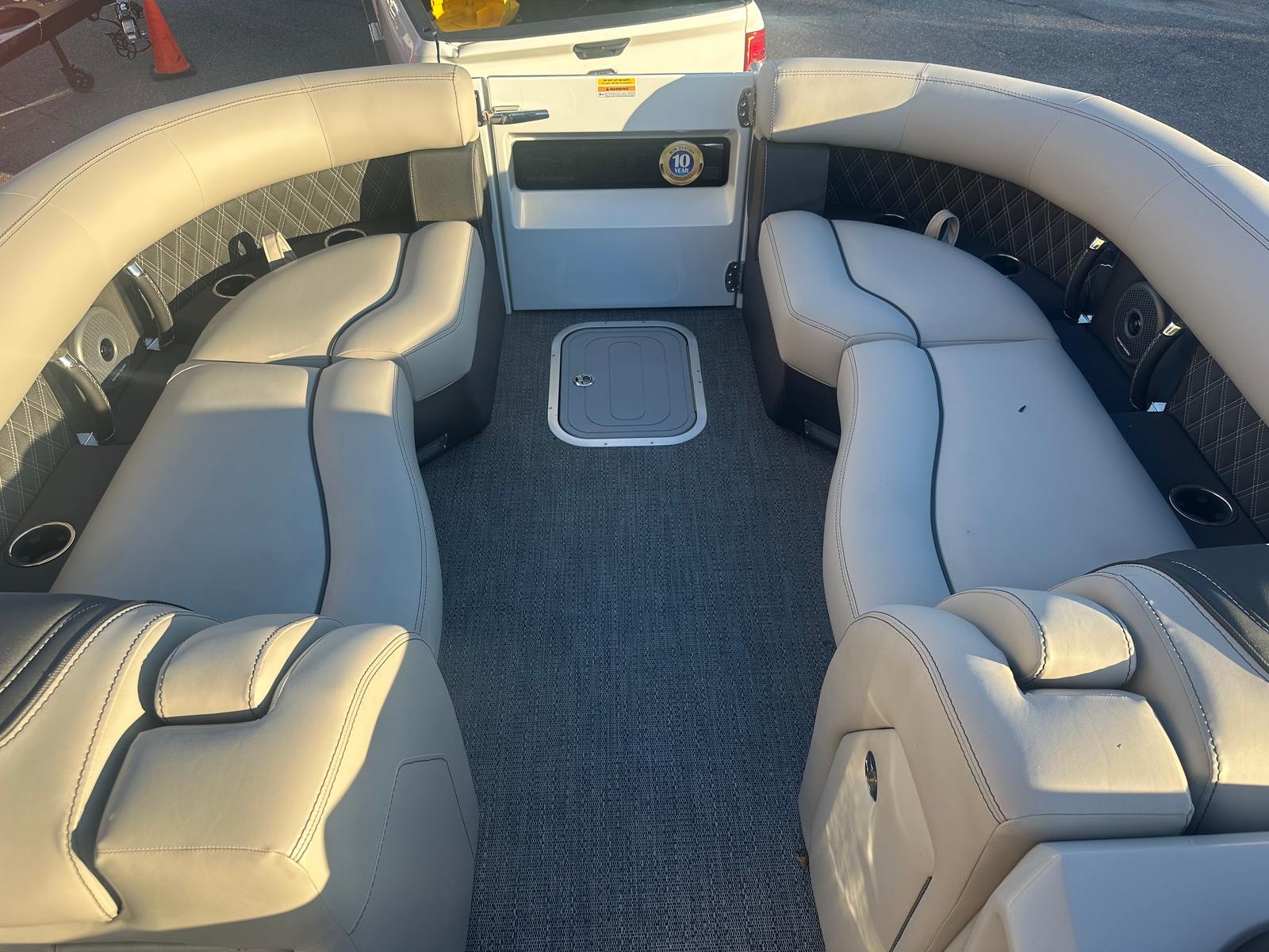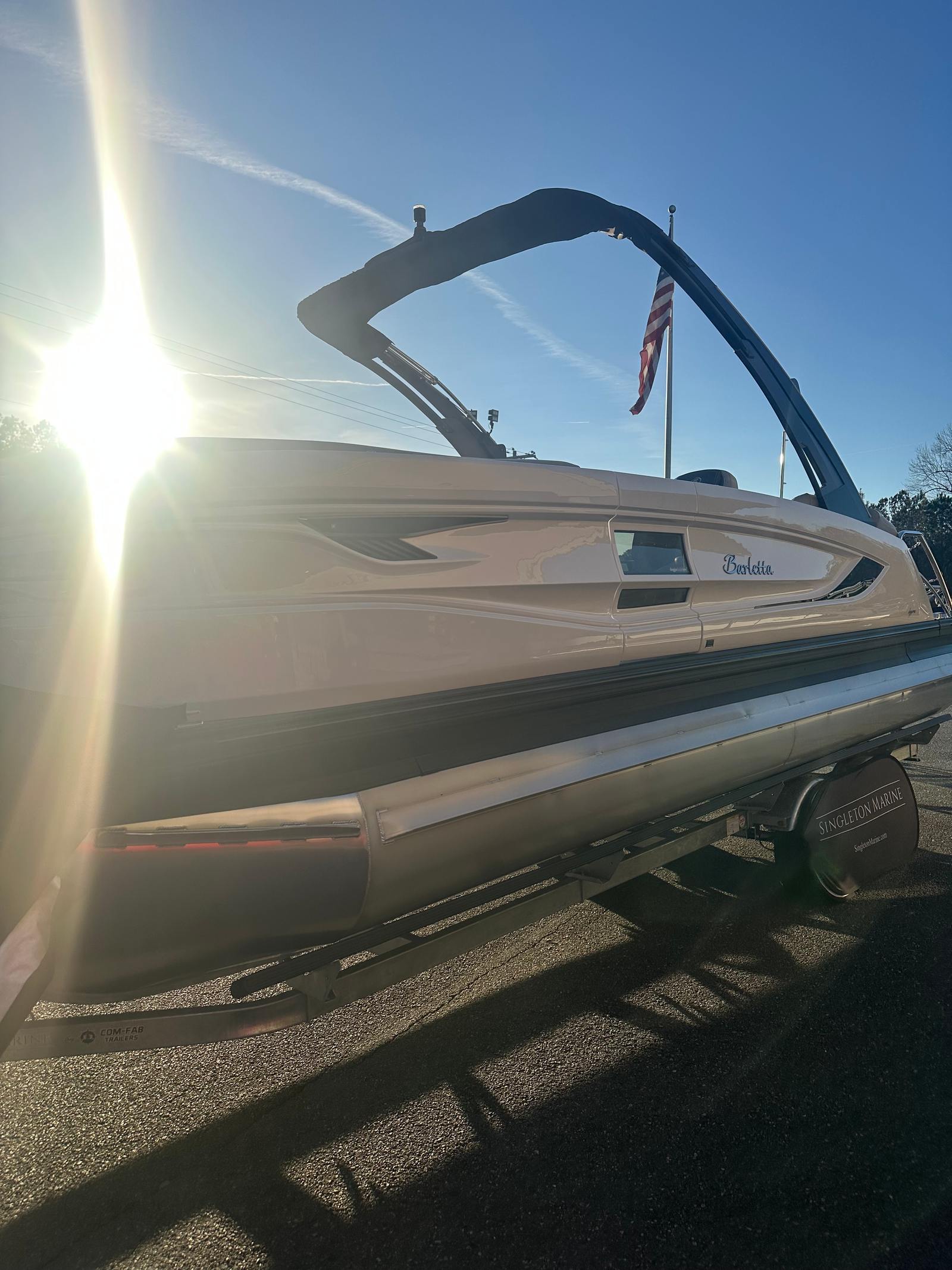 The Barletta Reserve Leggera 23UCA is a 2026 model pontoon boat, measuring an impressive 25.5 feet in length. This new pontoon is crafted to deliver an exceptional boating experience, whether you’re cruising with family, entertaining friends, or simply soaking up the sun. The Reserve Leggera series is renowned for its attention to detail and commitment to quality, and the 23UCA is no exception. Its spacious deck layout offers ample room for relaxation, socializing, and enjoying the scenic beauty of your favorite waterways. With its all-white standard color, this pontoon exudes a modern, sophisticated look that is sure to turn heads wherever you go.
