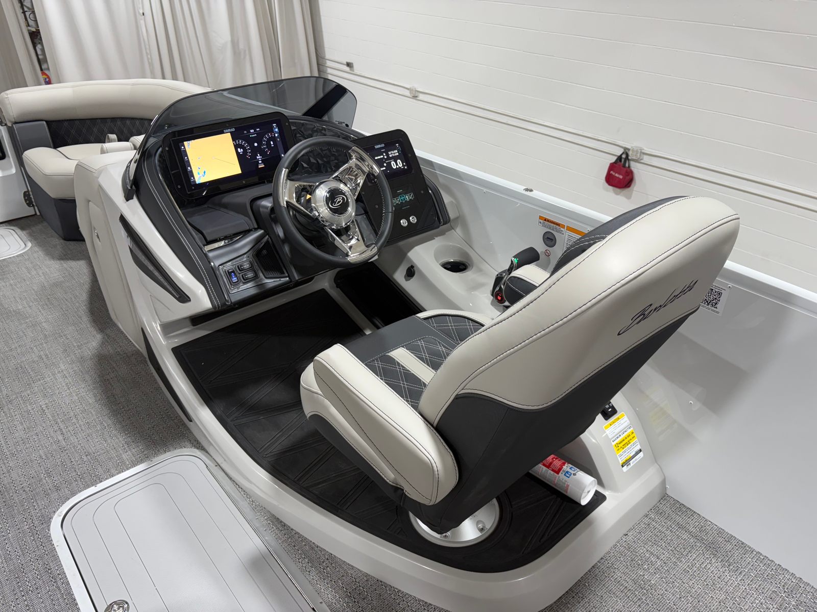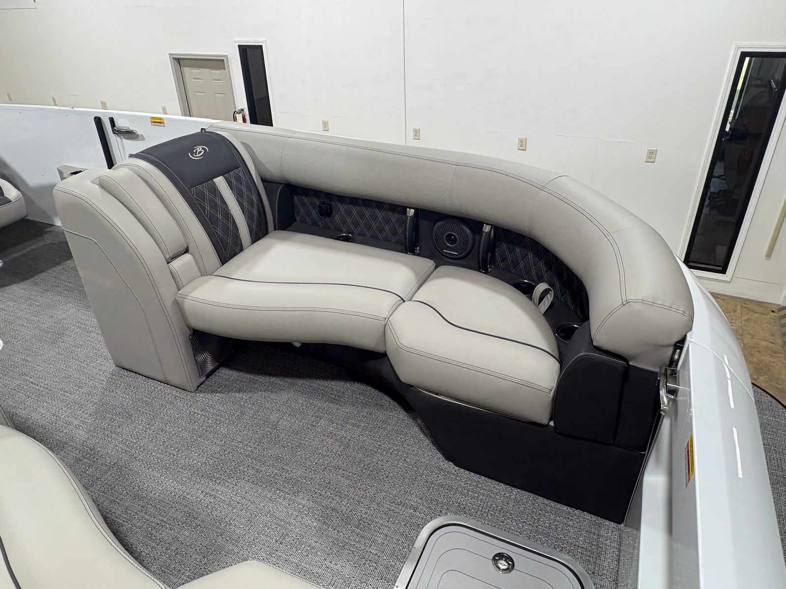The Barletta Reserve Leggera R26UCA is loaded with premium features designed to enhance your boating experience. The standard all-white exterior exudes sophistication, while the Marquesan Gray with Onyx furniture creates a refined and inviting atmosphere on board. The Amore Gray flooring is both stylish and practical, offering durability and easy maintenance for years of enjoyment.This pontoon boat is equipped with an on-board battery charger supporting two batteries, ensuring reliable power for all your adventures. The AccuThruster System provides precise maneuverability, making docking and close-quarters handling effortless. The helm windshield adds an extra layer of comfort and protection, shielding the captain from wind and spray during high-speed runs or breezy days on the water.