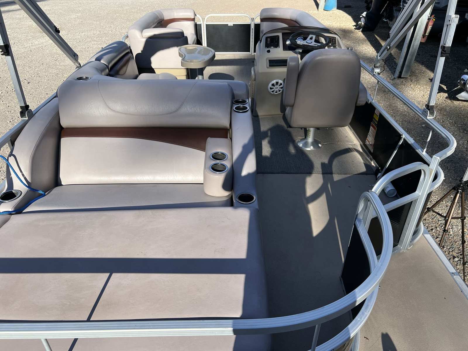 Powering the Bennington 24 SSL is a single engine with an impressive 115 horsepower, offering a smooth and responsive ride for all your aquatic adventures. With only 194 engine hours, this pontoon boat for sale has plenty of life left, ensuring dependable performance for seasons to come. The engine’s robust output makes it easy to cruise at comfortable speeds, tow water toys, or reach your favorite fishing spot with ease. Whether you’re gliding across calm waters or navigating busier channels, the 24 SSL’s performance capabilities provide confidence and control, allowing you to focus on enjoying the journey.