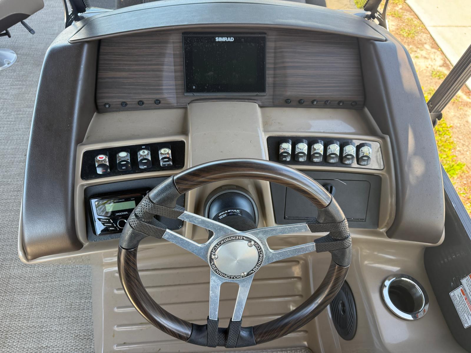 The Bennington 26 Lxsb is designed with both comfort and convenience in mind. Its spacious deck layout provides plenty of room for socializing, sunbathing, or enjoying a picnic on the water. The high-quality materials and thoughtful design elements create an inviting atmosphere, making every trip enjoyable for passengers of all ages. The pontoon’s generous length allows for flexible seating arrangements and easy movement throughout the boat, enhancing the overall experience.This model is equipped with a range of special features that elevate your time on the water. From plush seating to user-friendly controls, every detail is crafted to maximize comfort and ease of use. The sturdy construction and reliable performance make this Bennington boat for sale a smart investment for those who value both style and substance.