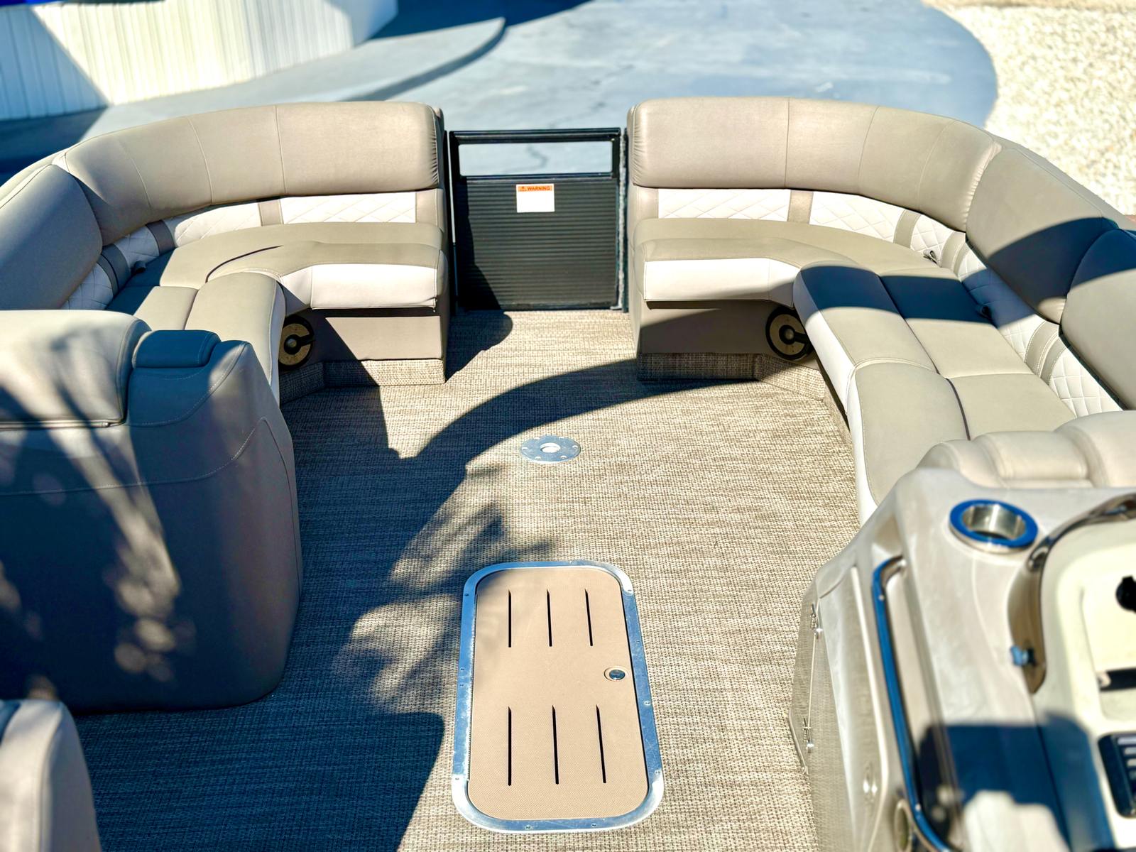 Beyond its recreational appeal, the Bennington 28 RSB pontoon boat for sale offers a range of practical benefits. The spacious deck provides ample storage for gear, water toys, and personal items, keeping the area clutter-free and organized. The pontoon’s design makes docking and maneuvering straightforward, even for those new to boating. Fuel efficiency is enhanced by the modern engine setup, allowing you to spend more time on the water and less time at the pump.The durable construction and quality materials ensure this Bennington boat for sale is built to last, providing peace of mind for years to come. Maintenance is simplified thanks to the thoughtful engineering, making ownership as enjoyable as the time you spend on the water. Whether you’re planning day trips, weekend getaways, or extended cruises, the Bennington 28 RSB is equipped to handle it all with ease.