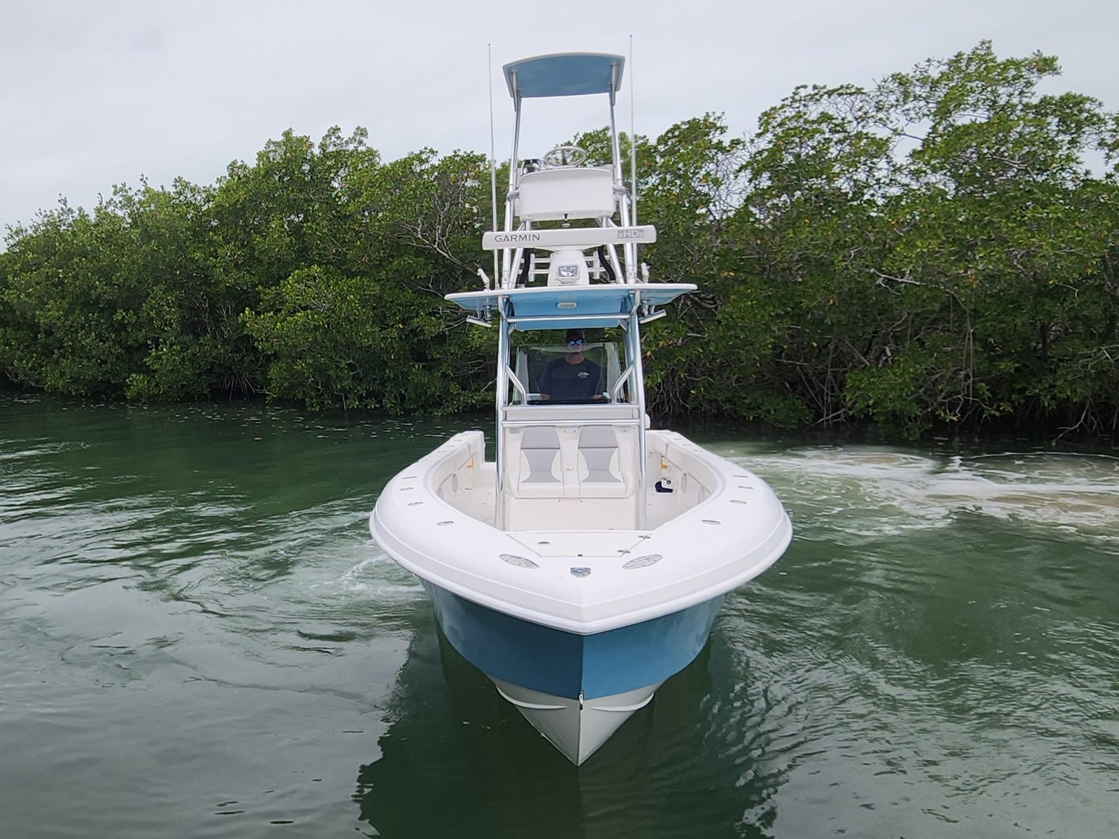 Power and performance are at the heart of the Bluewater 2850. Equipped with twin engines delivering a combined 2700 horsepower, this Center Console boat for sale offers exhilarating speed and responsive handling. Whether you’re navigating choppy offshore waters or cruising along the coastline, the 2850’s engines provide the thrust and reliability you need for a confident ride. With only 103 engine hours, these powerplants are just getting started, offering peace of mind and plenty of adventures ahead.
