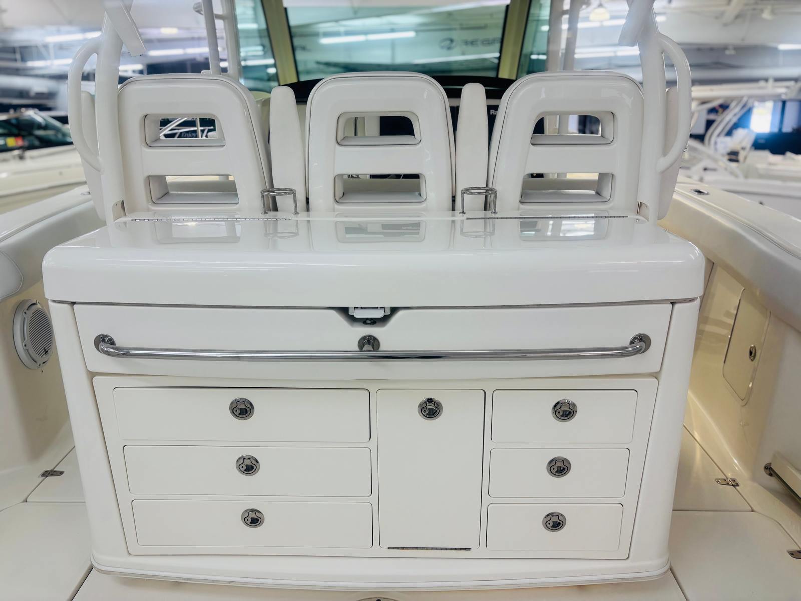 Under the hood, this 370 Outrage is powered by three robust engines, delivering a combined horsepower of 900. This impressive power setup ensures that you can navigate through various water conditions with ease and confidence. Whether youre slicing through calm lakes or handling the waves of the open ocean, the 900 horsepower engines provide the speed and agility that every boating enthusiast desires. The exceptional performance of this center console boat for sale guarantees an exhilarating ride every time you set sail.