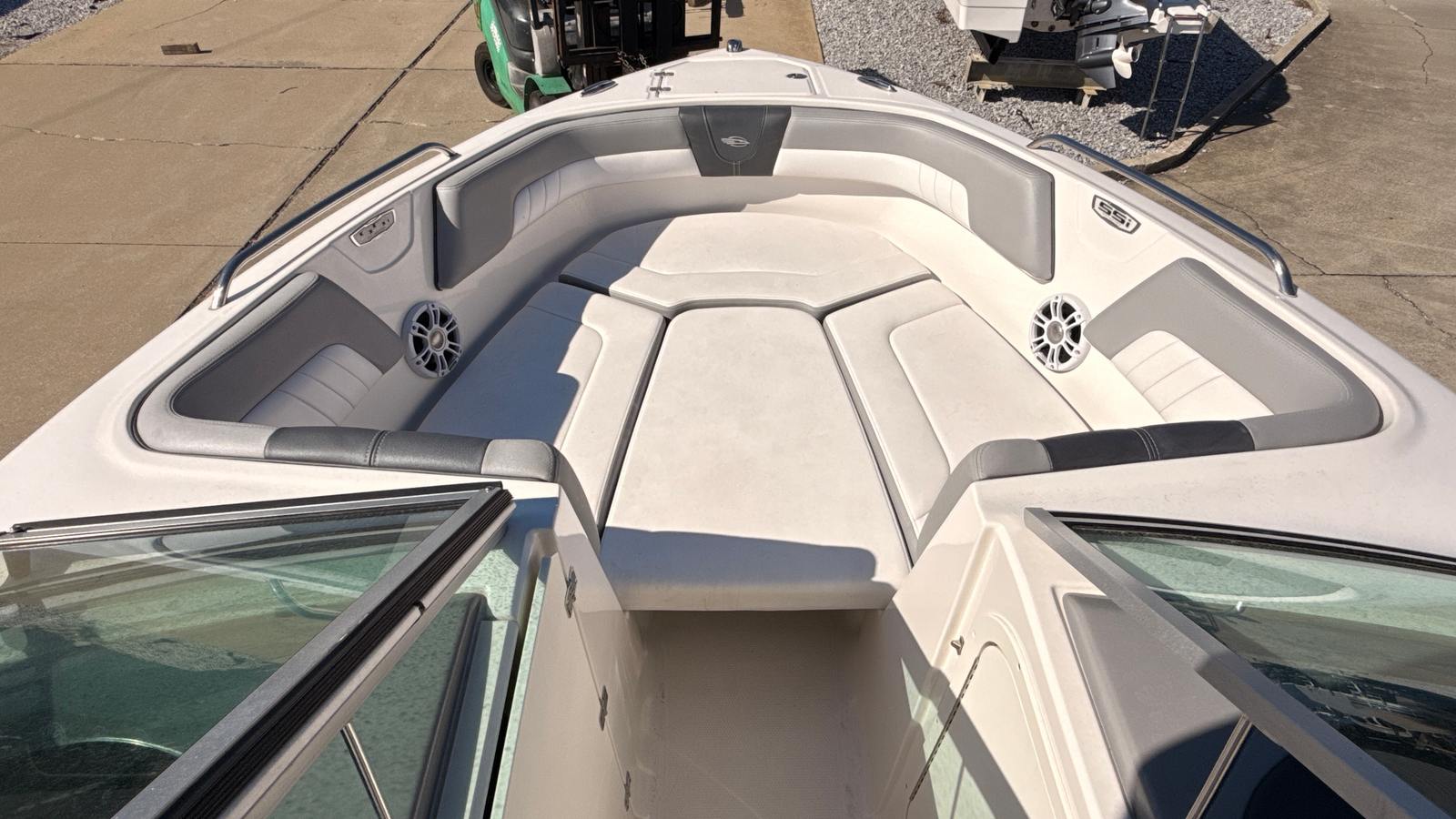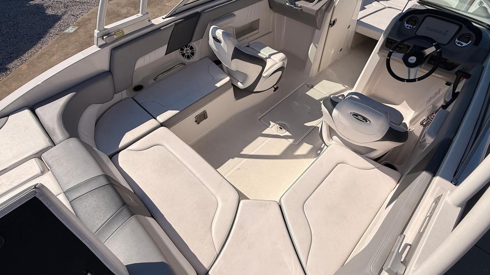 The Chaparral 23 SSI OB is packed with features that enhance both functionality and enjoyment. Its spacious bowrider layout offers generous seating arrangements, allowing guests to relax and socialize in comfort. The open design maximizes usable space, making it easy to move around the boat and enjoy every moment on the water. The high-quality construction and attention to detail are evident throughout, from the durable hull to the stylish upholstery.With a length of 23 feet, this bowrider boat for sale provides ample room for entertaining, sunbathing, or enjoying a picnic on the water. The ergonomic helm station is designed for intuitive control, ensuring that the captain can navigate with ease and confidence. Storage compartments are thoughtfully integrated throughout the boat, providing plenty of space for gear, water toys, and personal belongings, so you can keep the deck clutter-free and organized.