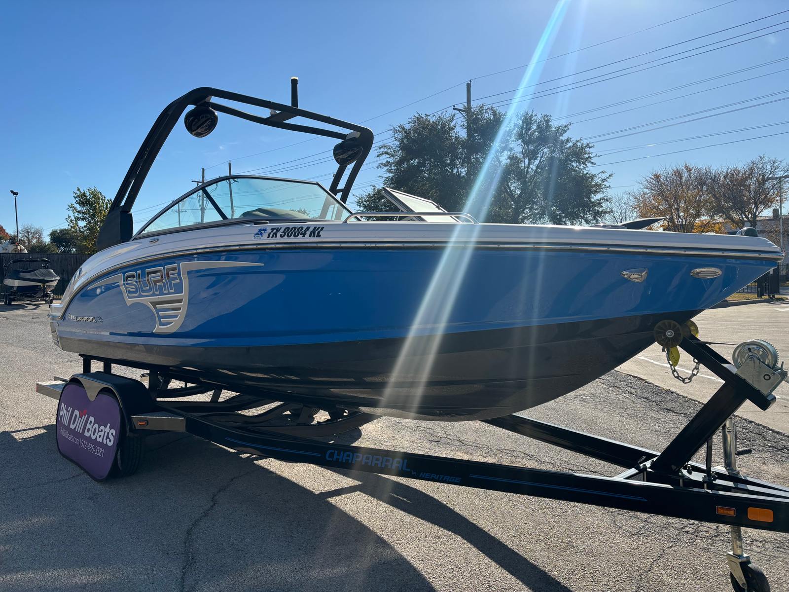 The 2019 Chaparral 23 Surf is a 23-foot Bowrider that exudes sophistication and sporty flair. Its sleek profile and contemporary lines make a bold statement at the marina, while its spacious layout ensures every passenger enjoys the ride. With a length of 23 feet, this boat offers ample room for family and friends, making it perfect for social gatherings, water sports, and relaxing cruises. The Chaparral 23 Surf is designed to maximize fun and comfort, providing the ideal platform for memorable days on the water.