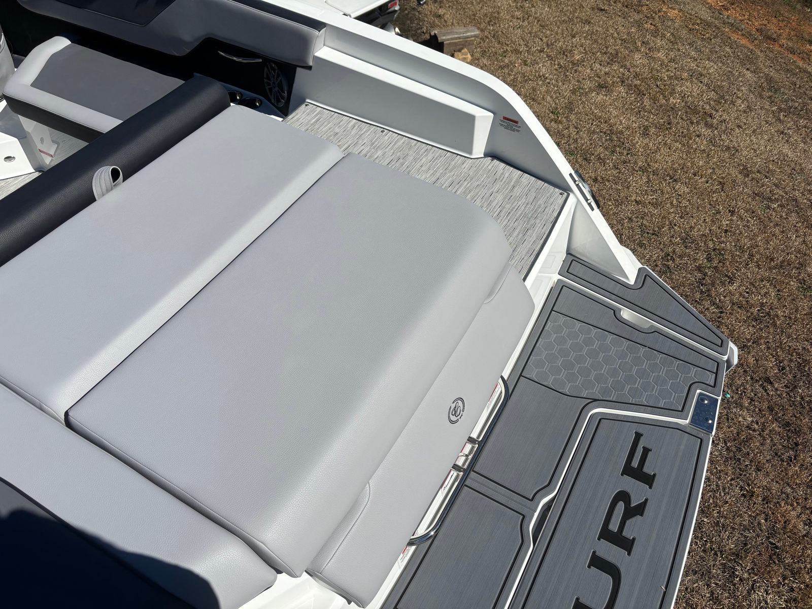 Beyond its impressive performance and luxurious features, the Cobalt CS23 Surf is engineered for practical, everyday use. The ample storage options throughout the boat make it easy to stow gear, water toys, and personal items, keeping the deck clutter-free and organized. The inclusion of Fender Clips with Line streamlines the docking process, allowing you to secure your boat quickly and confidently, even in busy marinas.The efficient single-engine design not only delivers powerful performance but also helps optimize fuel consumption, making your boating adventures more economical. The durable Seagrass Silver Ash floor covering is easy to clean and maintain, ensuring your boat stays looking its best with minimal effort. The Mooring Cover with Arch provides essential protection from the elements, preserving your investment and reducing maintenance time.