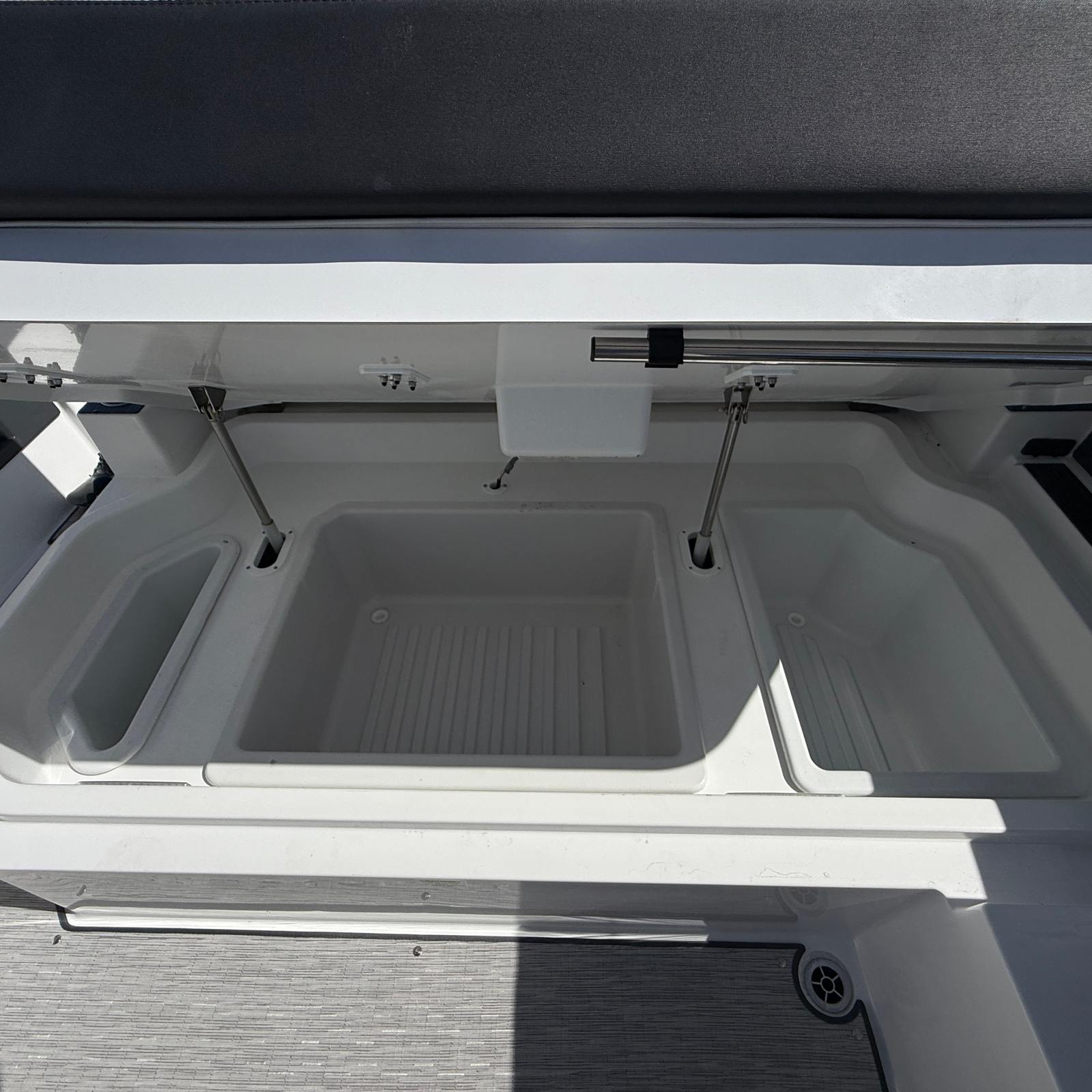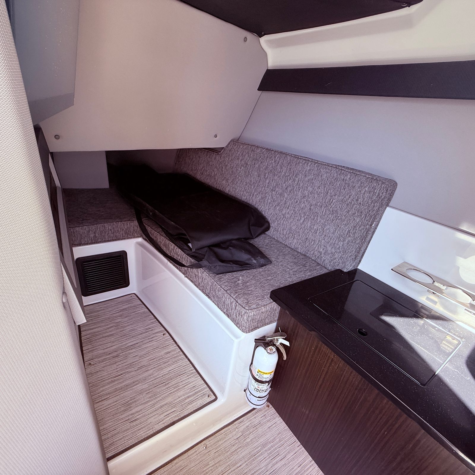 The Cobalt R33 OB is a showcase of thoughtful design and premium craftsmanship. The hull features a Light Sage color on both the sides and bottom, accented by a crisp White stripe that adds a touch of elegance and distinction. The interior is appointed in the Summit and Frost color palette, creating a bright and inviting atmosphere, while the cabin interior in Cavern Gray offers a cozy retreat for relaxation.This Coastal Edition model is equipped with an electric adjustable seat (standard), allowing you to find the perfect position for comfort and visibility. The swim platform extension in White provides additional space for lounging or easy access to the water, making it ideal for swimming, water sports, or simply soaking up the sun. For those seeking shade and protection, the aft shade sail with hard top in White offers a stylish solution, ensuring you and your guests stay cool and comfortable during long days on the water.