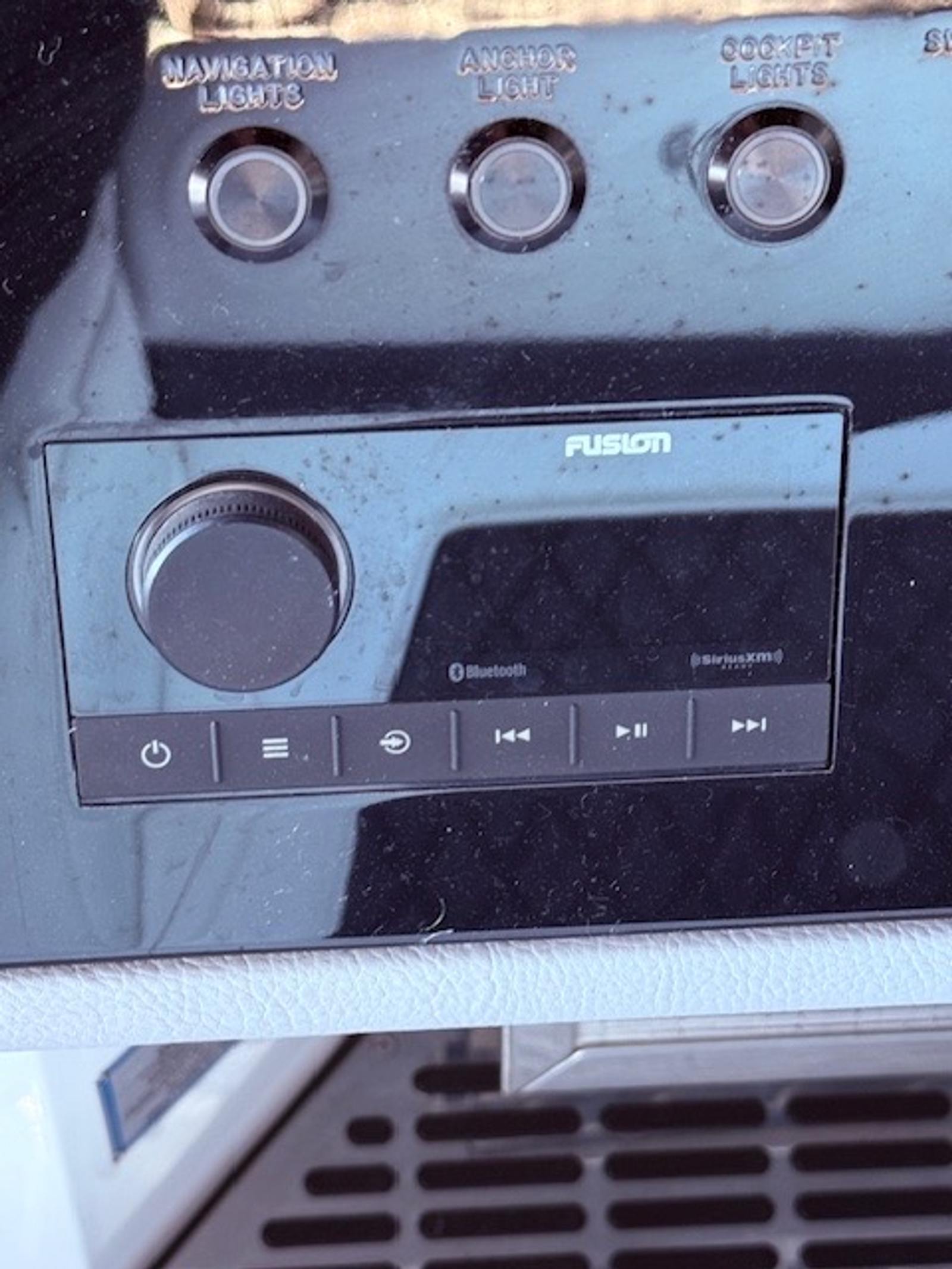 Comfort and amenities are front and center. The hydraulic swim platform with flip-down step creates effortless water access, while underwater RGB lighting and transom lighting set the tone at anchor. A Platinum Harman Kardon sound system with hardtop and transom speakers delivers impressive audio throughout the boat, and the wide, open seating layout makes it easy to host family and friends all day long.