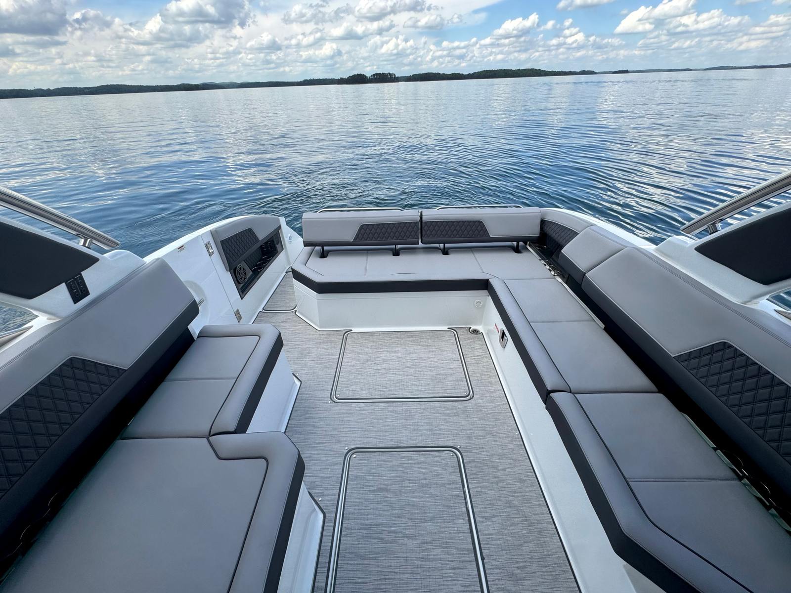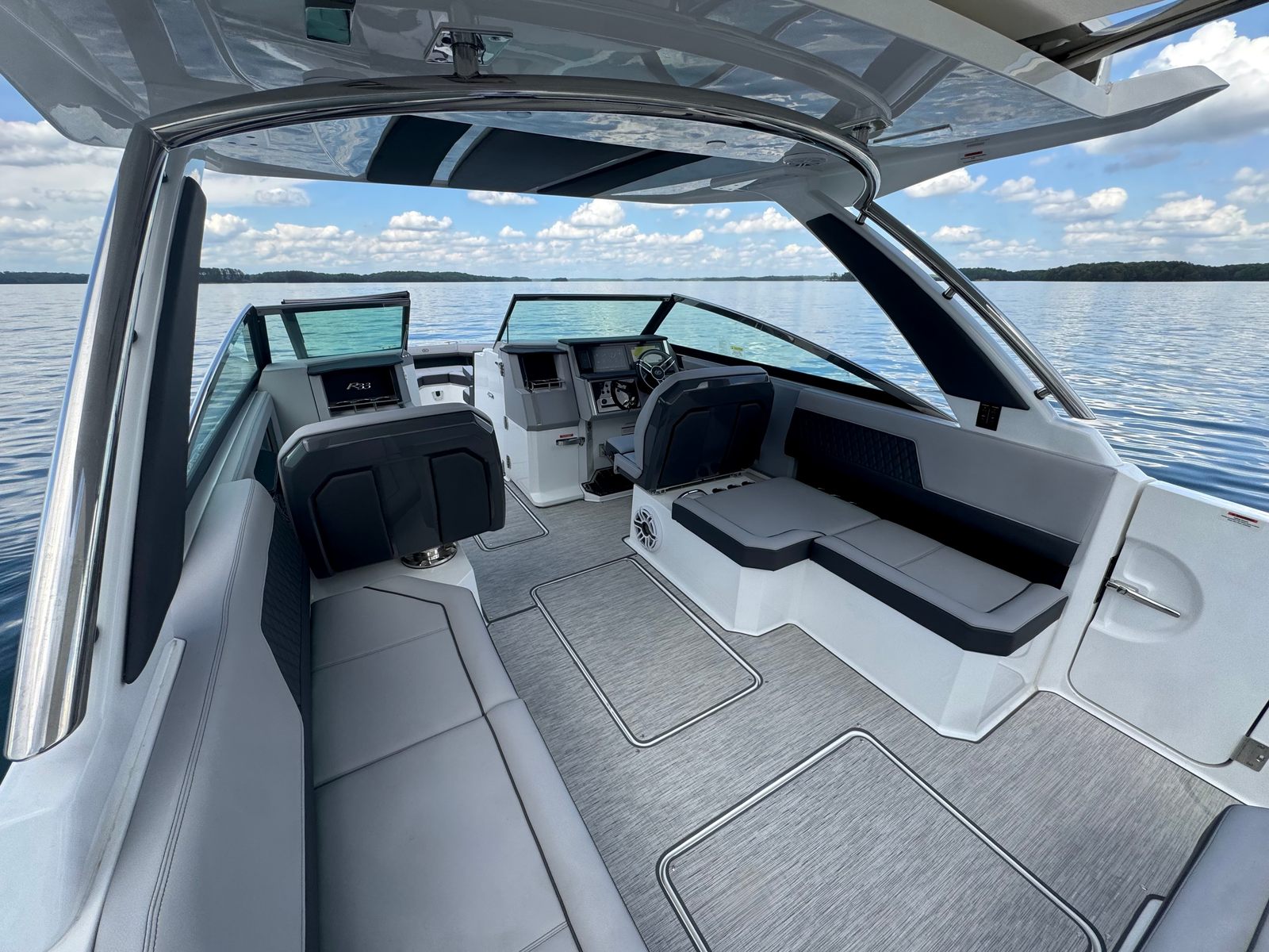 The R33 is perfect for family outings, entertaining friends, or relaxing on the water. Spacious L-lounge seating, a versatile cockpit, and swim platform ensure every day is enjoyable, while hull side Graphite Gray and hull bottom Rich Ebony give it a striking, stylish look.