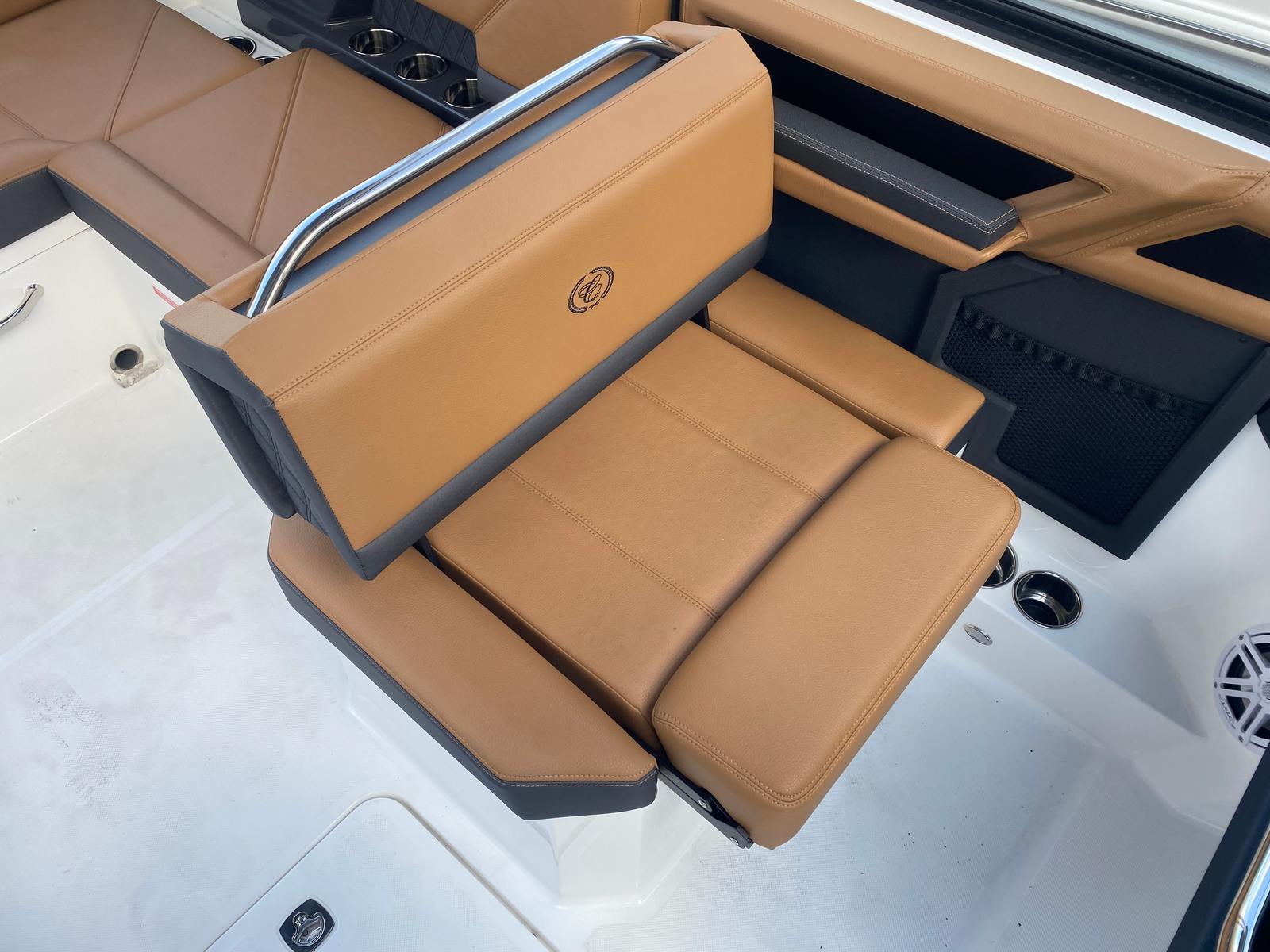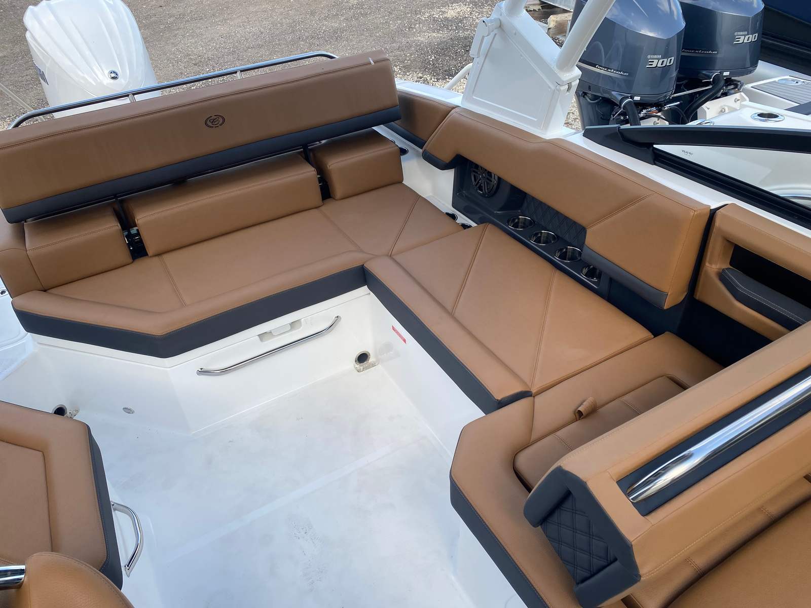 At the heart of the Cobalt R4 OB is a powerful Yamaha F250XSB2 outboard engine, delivering an impressive 250 horsepower. This single-engine setup ensures smooth acceleration, responsive handling, and reliable performance in a variety of conditions. The R4 OB’s hull design is optimized for stability and efficiency, allowing you to glide effortlessly across the water while enjoying excellent fuel economy. Whether you’re towing water sports enthusiasts, exploring new coves, or simply enjoying a leisurely cruise, the Cobalt R4 OB’s performance capabilities make every outing memorable.