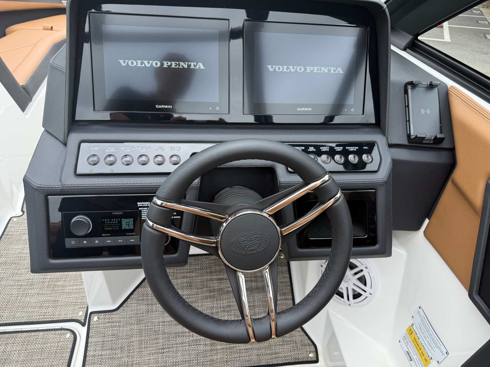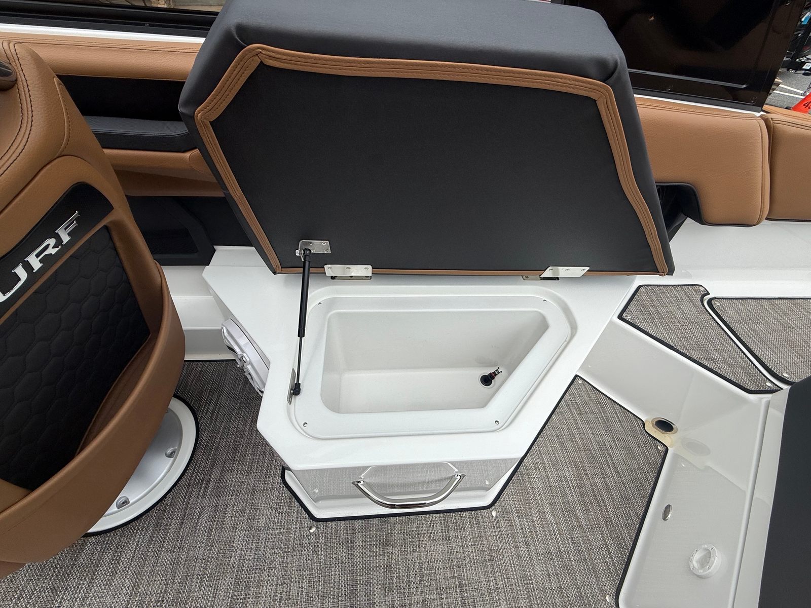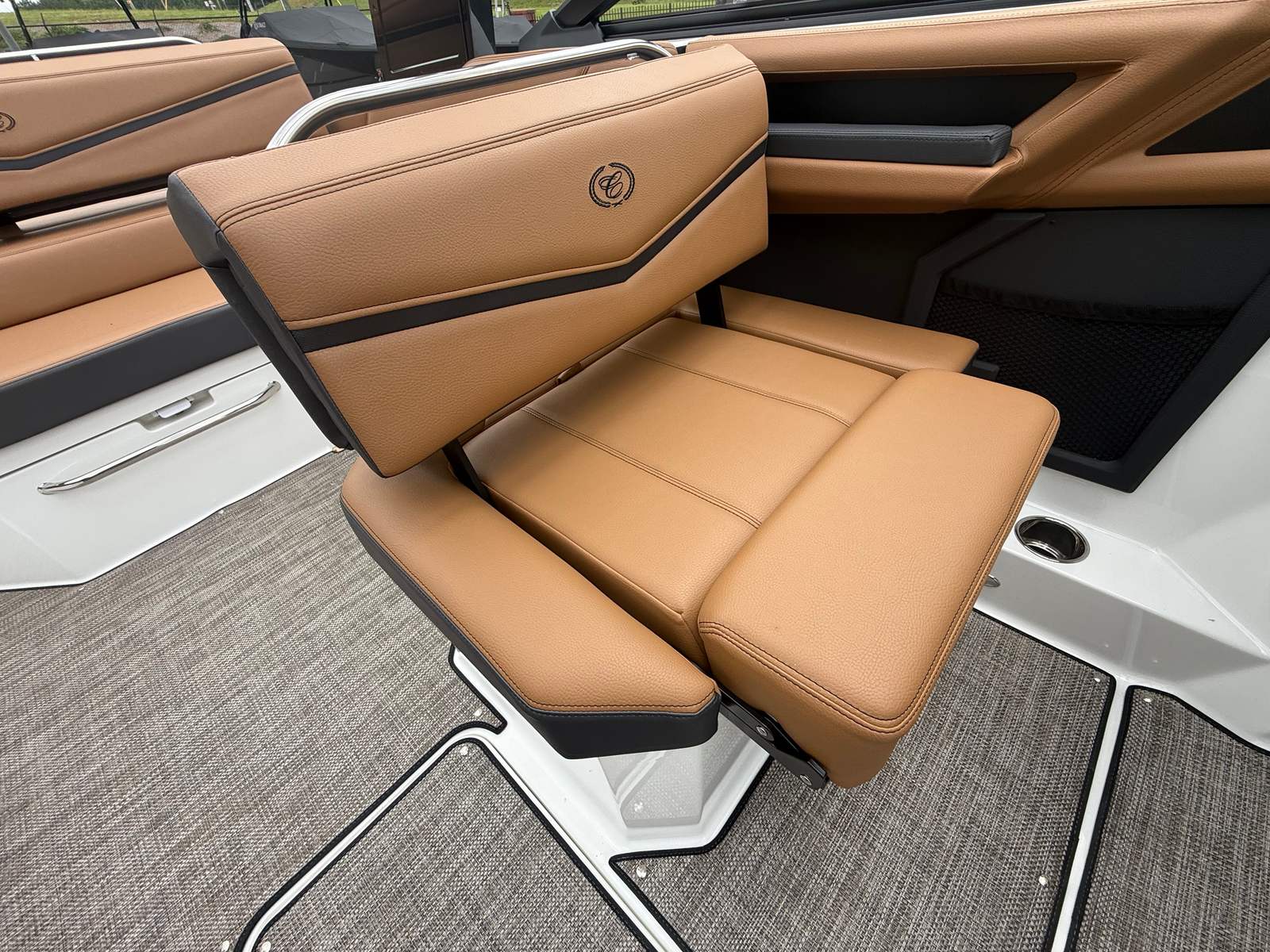The Cobalt R4 Surf is loaded with premium features that enhance comfort, convenience, and style. The interior is a masterpiece of design, featuring a luxurious combination of Caramel, Carbon, and Ebony materials that create an inviting and upscale atmosphere. The AFT Facing Rumble Seat offers a unique vantage point for soaking in the scenery or socializing with guests, while the Sof-Trac Mat (SW PForm with Step) in Caramel/Ebony ensures a soft, slip-resistant surface underfoot.For added convenience, the R4 Surf includes a Battery Maintainer/Charger (110V), ensuring your boat is always ready for action. The wireless phone charger/holder keeps your devices powered and secure, so you can stay connected while on the water. Stainless steel docking lights not only enhance the boat’s appearance but also provide increased visibility during evening arrivals and departures. The Obsidian Windshield adds a touch of modern elegance and offers excellent protection from wind and spray, allowing you to cruise in comfort regardless of the conditions.
