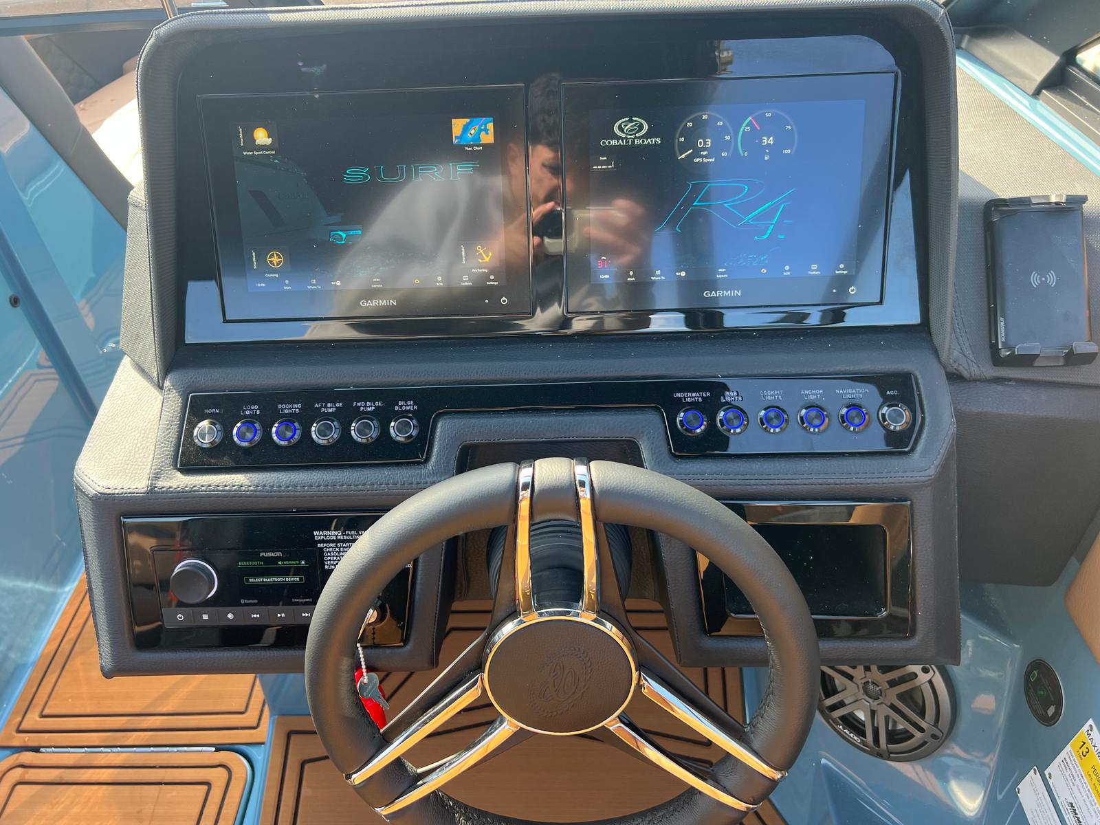 The Cobalt R4 Surf is as practical as it is stylish. The swim platform extension makes boarding and disembarking a breeze, while also providing a convenient spot for water sports preparation. The battery maintainer/charger helps keep your boat’s systems in top condition, reducing maintenance worries and ensuring you’re always ready to go.Docking and maneuvering are made easier thanks to the responsive handling provided by the Volvo V8 engine and forward drive system. The thoughtful design of the R4 Surf means you’ll have ample storage for gear, towels, and refreshments, so you can focus on enjoying your time on the water without clutter or hassle.