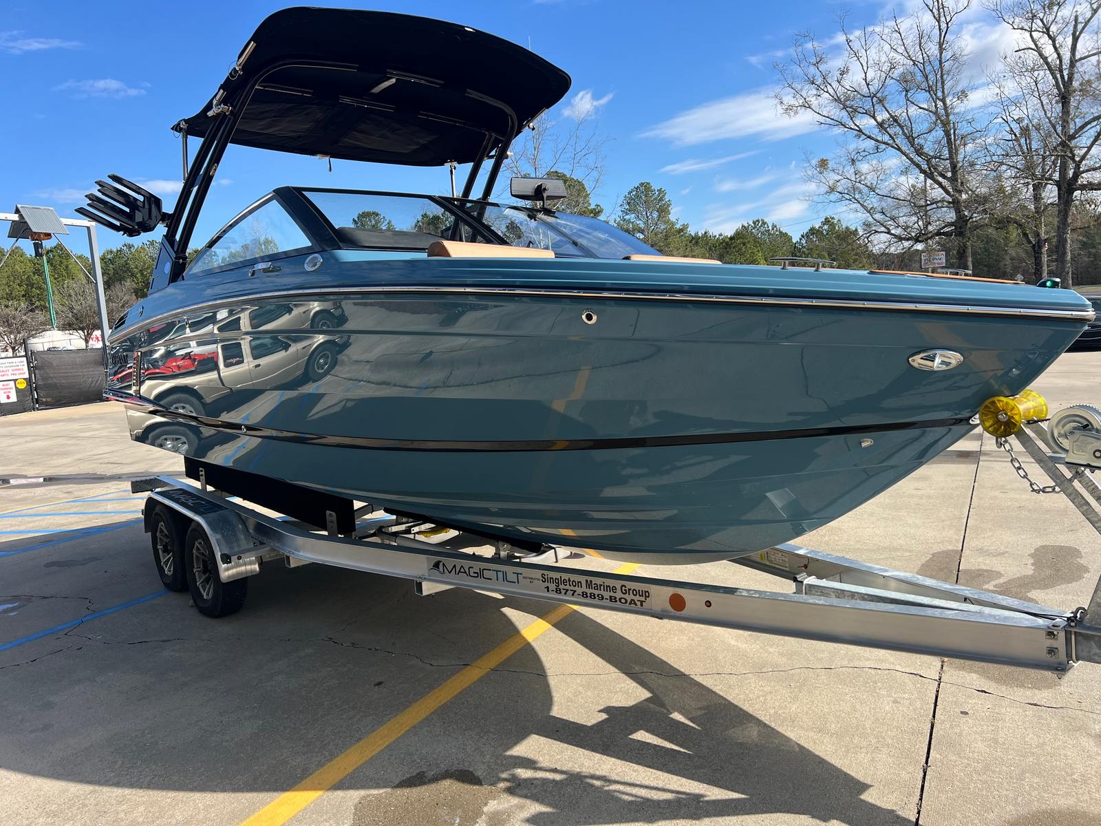 The 2026 Cobalt R4 Surf is a 24.25-foot bowrider that stands out with its sleek lines and modern design. As a brand-new model, it showcases the latest innovations in boating technology and style. The R4 Surf’s Bayside Blue upper surf accent and surf mid hull side, complemented by a rich ebony accent stripe and hull bottom, create a striking visual presence on the water. The swim platform extension in rich ebony further enhances both the look and functionality of this remarkable vessel. Step aboard and you’ll immediately notice the sophisticated interior, featuring a harmonious blend of caramel, carbon, and ebony tones, ensuring every journey is as comfortable as it is stylish.