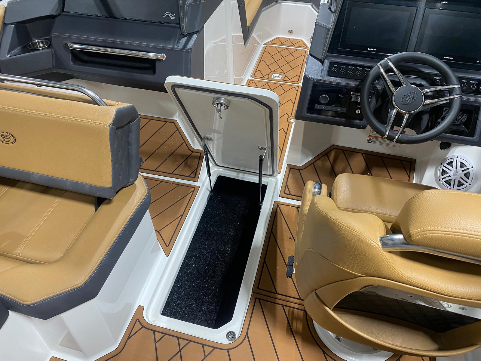 The Cobalt R4 is designed with practicality in mind, making boat ownership more enjoyable and less stressful. The integrated fender clips and stainless steel docking lights simplify the docking process, ensuring safety and convenience when arriving at or leaving the marina. The spacious interior offers ample room for gear, snacks, and personal items, keeping the deck clutter-free and organized. The efficient Volvo V8 engine is engineered for optimal fuel economy, allowing you to spend more time on the water and less time at the pump. Whether you are planning a quick afternoon escape or a full day of adventure, the R4’s thoughtful design features make every trip effortless and enjoyable.