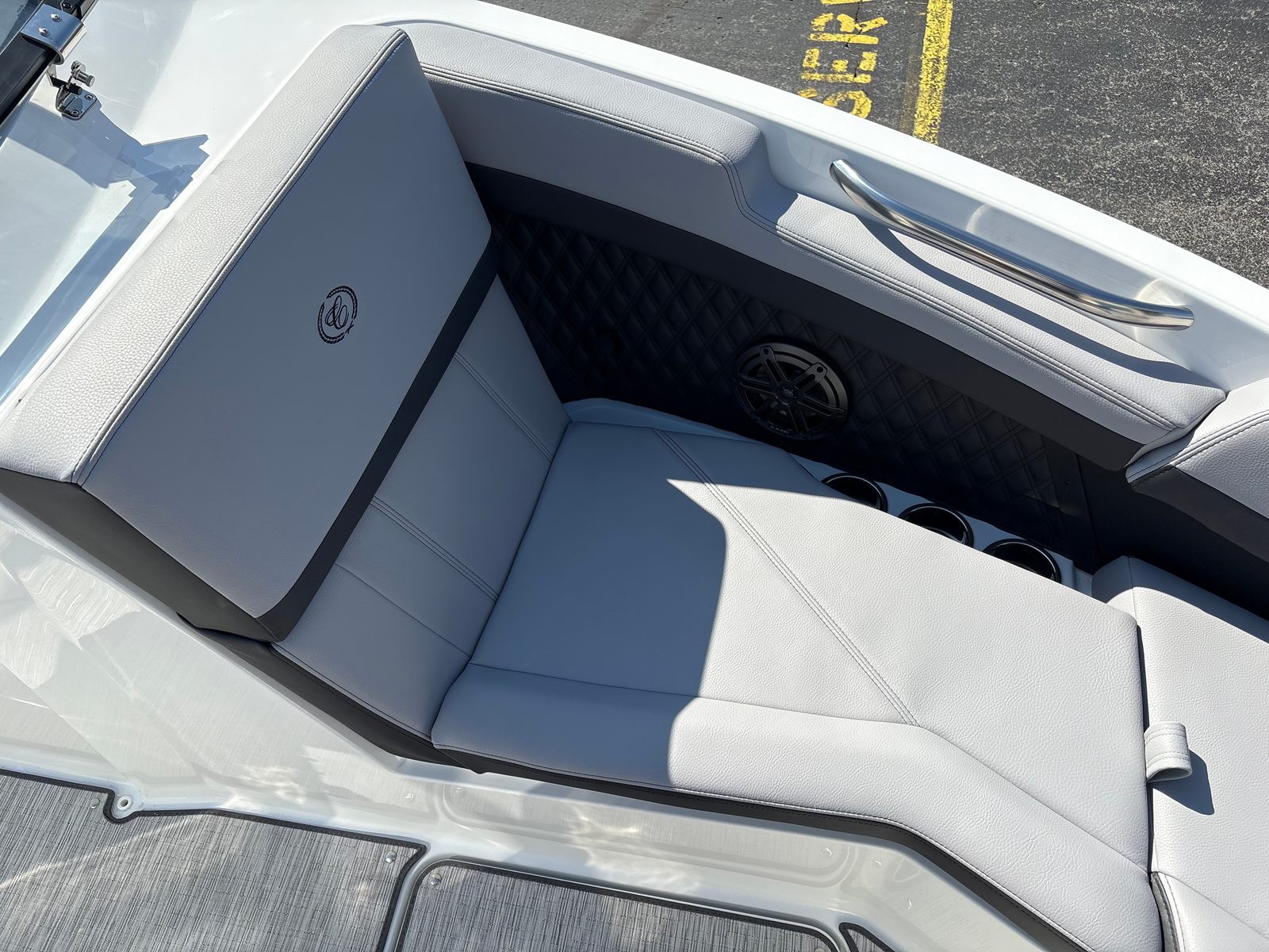 The Cobalt R4 is loaded with features that enhance both its functionality and its appeal. The Aft Facing Rumble Seat offers a unique and comfortable spot to relax and take in the scenery, while the Arch E2 Black Folding with Bimini in Ebony provides shade and style, making it easy to enjoy sunny days without worry. The boat’s Battery Maintainer/Charger ensures your power systems are always ready for action, while the Cobalt Letters in Black Satin add a touch of sophistication to the boat’s branding. Stainless Steel Docking Lights not only enhance the R4’s appearance but also provide practical illumination for evening arrivals and departures. Every detail, from the color accents to the premium materials, reflects Cobalt’s dedication to quality and innovation.