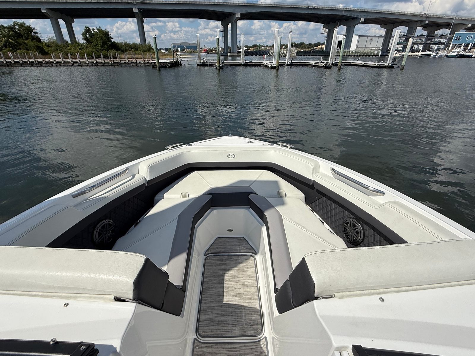 Practicality is at the heart of the Cobalt R4’s design. The boat’s ample storage options make it easy to stow life jackets, water sports equipment, and personal items, keeping the deck clutter-free and safe. The intuitive helm layout and responsive controls simplify docking and maneuvering, even in tight spaces, making this bowrider an excellent choice for both experienced captains and newcomers alike.Fuel efficiency is another key benefit of the R4’s design. The combination of a single, powerful engine and a well-engineered hull means you can enjoy longer days on the water without frequent refueling stops. This efficiency not only saves money but also allows you to explore farther and make the most of every adventure.