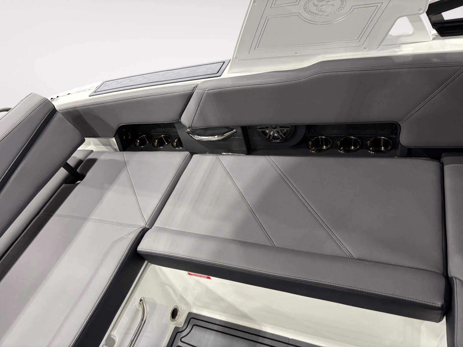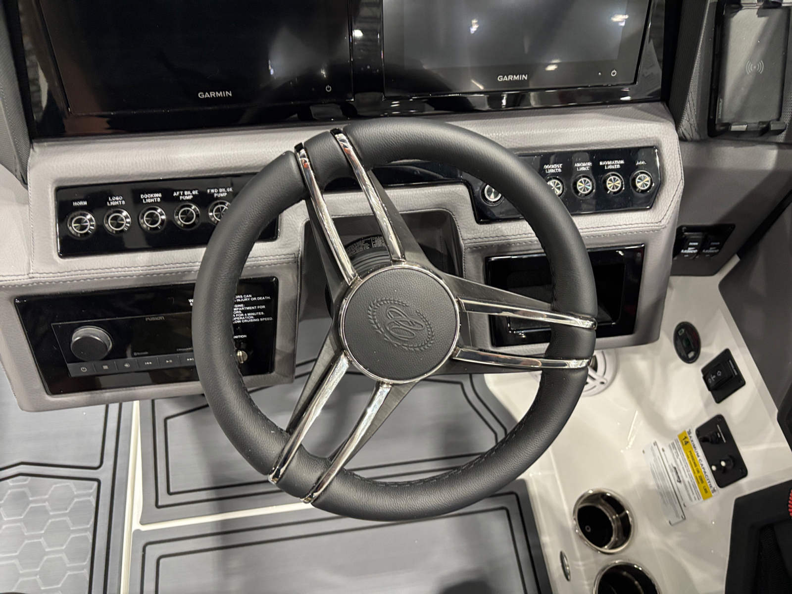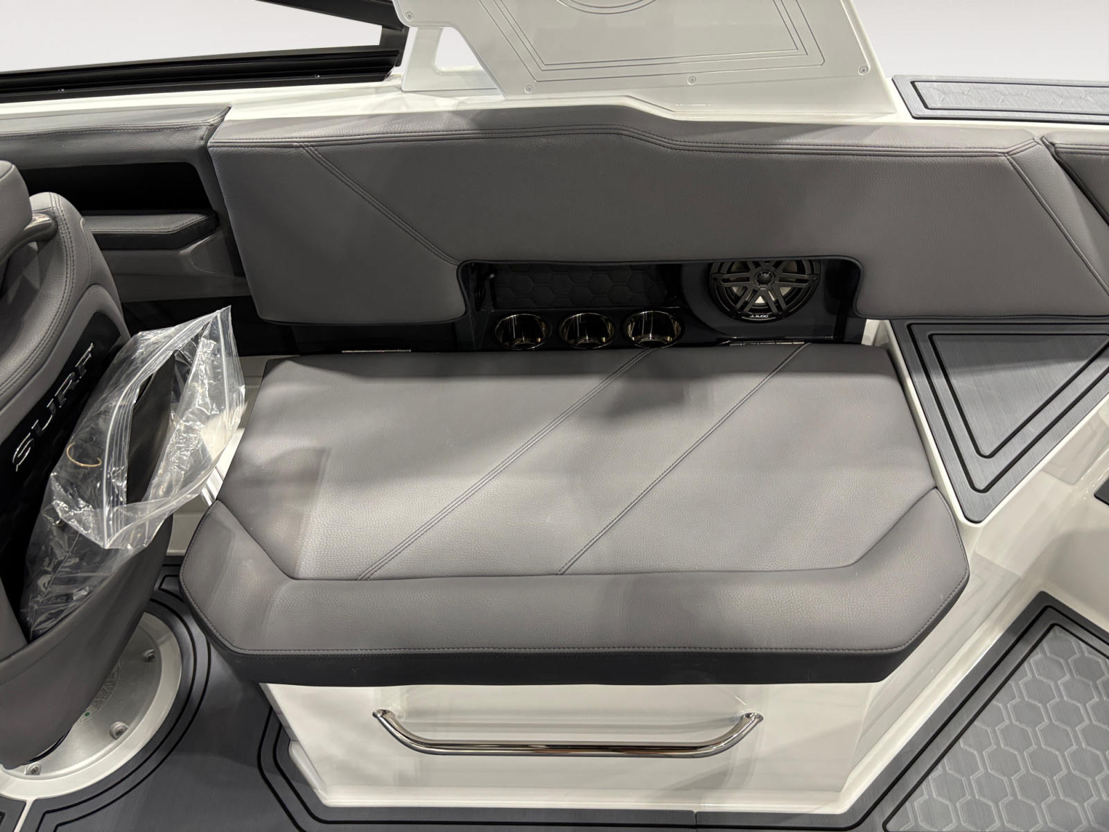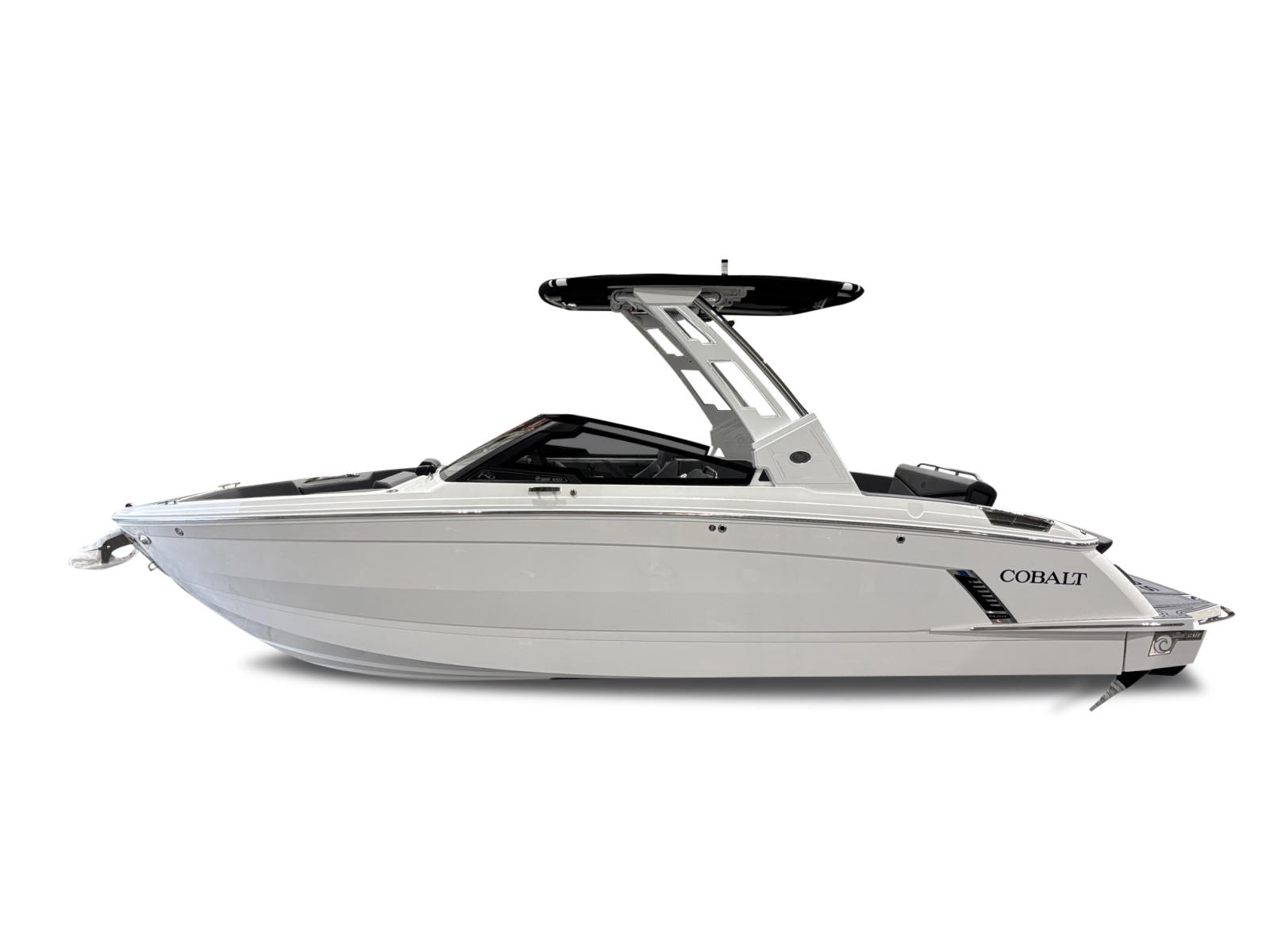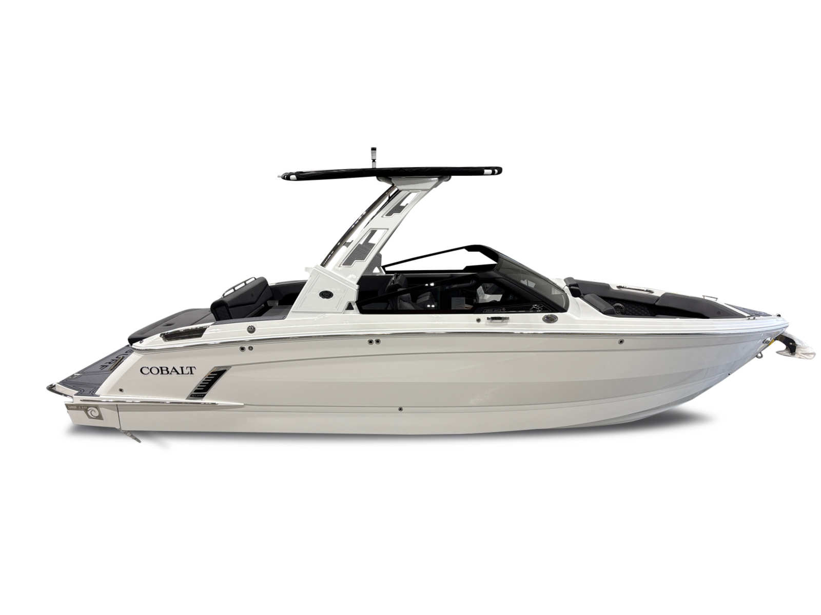 The Cobalt R6 Surf is loaded with premium features that elevate your boating experience. The battery maintainer/charger (110V) ensures your boat is always ready for action, while the rear-facing camera provides enhanced visibility for safer maneuvering and docking. The Cobalt letters in black satin add a touch of sophistication to the boat’s exterior, complemented by stainless steel docking lights that not only enhance safety but also contribute to the boat’s modern aesthetic.The white (folding) El Arch with Prisma and the ebony rotating shade offer both style and functionality, providing shade and comfort for all passengers. The flagpole with flag adds a classic nautical touch, while the glass cockpit with dual Garmin 8610 displays delivers state-of-the-art navigation and control at your fingertips. The head with pump out porta potti ensures convenience during longer outings, and the LED interior accent lighting, featuring customizable R/G/B colors, creates a vibrant and inviting atmosphere for evening cruises.