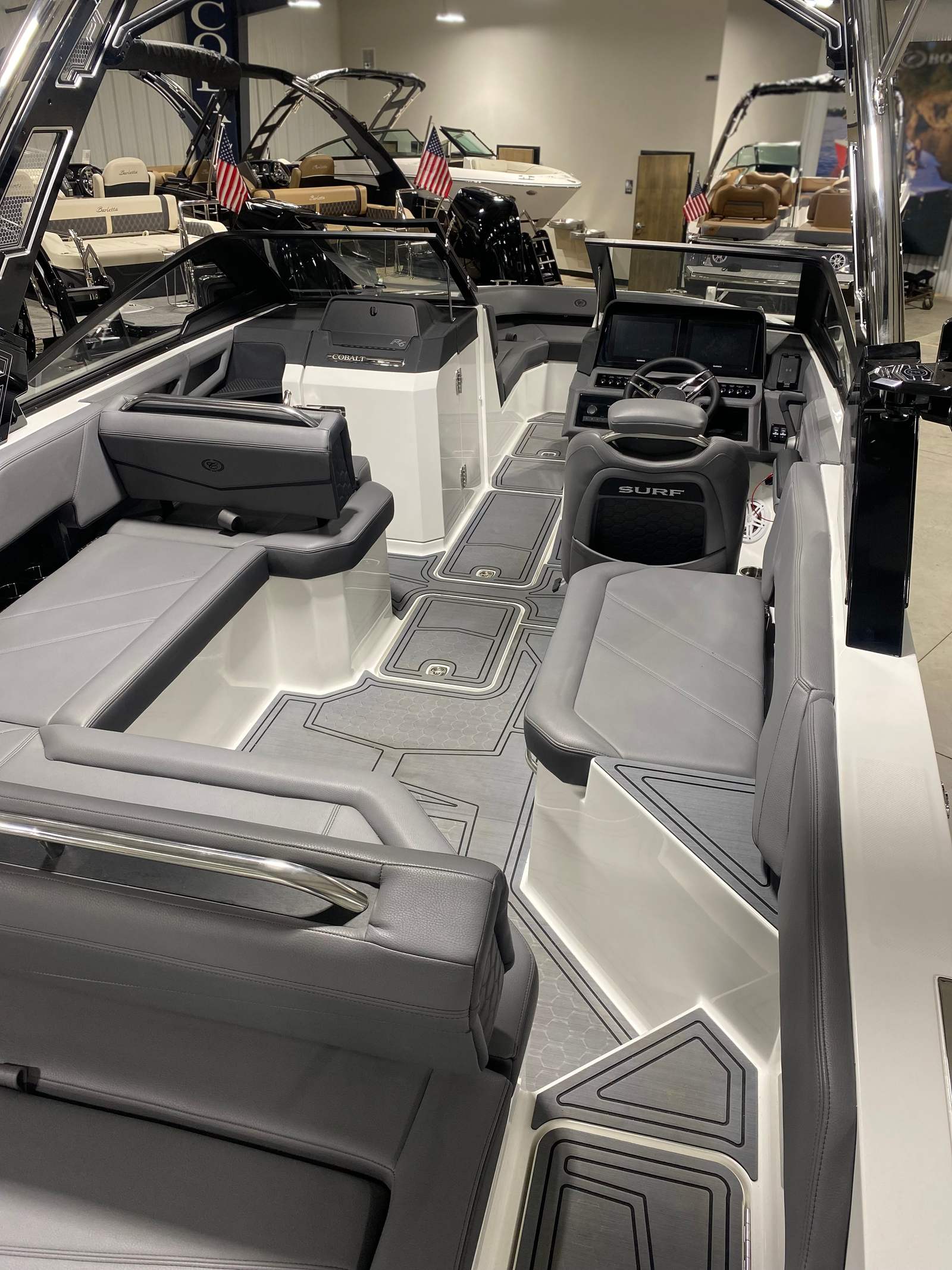 The 2025 Cobalt R6 Surf stands out as a premier Bowrider, measuring an impressive 25.75 feet in length. This new vessel showcases Cobalt’s commitment to quality, craftsmanship, and cutting-edge design. The R6 Surf’s spacious layout is perfect for entertaining, relaxing, and enjoying all the recreational possibilities that come with owning a luxury Bowrider. Whether you’re cruising along the coast, anchoring at your favorite cove, or enjoying watersports, this Cobalt boat for sale is built to accommodate your every need.