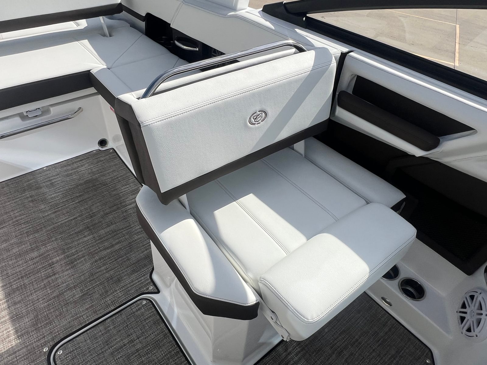 Beyond its impressive style and performance, the Cobalt R6 offers practical benefits that make ownership a breeze. The battery maintainer/charger helps keep your systems in top condition, reducing maintenance hassles and ensuring your boat is always ready for spontaneous adventures. The mooring cover for the folding arch provides added protection from the elements, preserving the boat’s pristine appearance.The R6’s manageable length makes docking and storage straightforward, whether you are keeping the boat at a marina or trailering it to new destinations. The durable seagrass flooring is easy to clean and stands up to heavy use, while the advanced navigation system simplifies route planning and enhances safety. These practical features combine to create a bowrider boat for sale that is as easy to own as it is enjoyable to use.