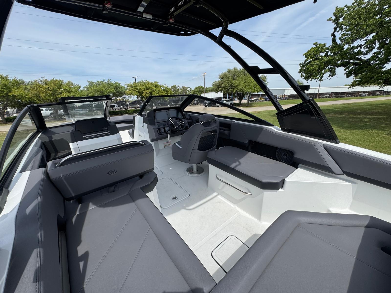 The Cobalt R6 is packed with features that elevate your boating experience. Its spacious bow seating area is perfect for lounging in the sun or enjoying scenic views, while the ergonomic helm station puts all controls within easy reach for the captain. The cockpit is thoughtfully designed to maximize comfort and usability, with plush seating, ample legroom, and intuitive storage solutions. The R6’s innovative layout ensures that every inch of space is utilized efficiently, providing plenty of room for guests and gear alike.Special features of the Cobalt R6 include advanced navigation and control systems, premium upholstery, and a stylish, modern interior. The boat’s high-quality materials and attention to detail are evident throughout, from the sleek dashboard to the durable flooring. The swim platform at the stern offers easy access to the water, making it ideal for swimming, diving, or simply relaxing at anchor.