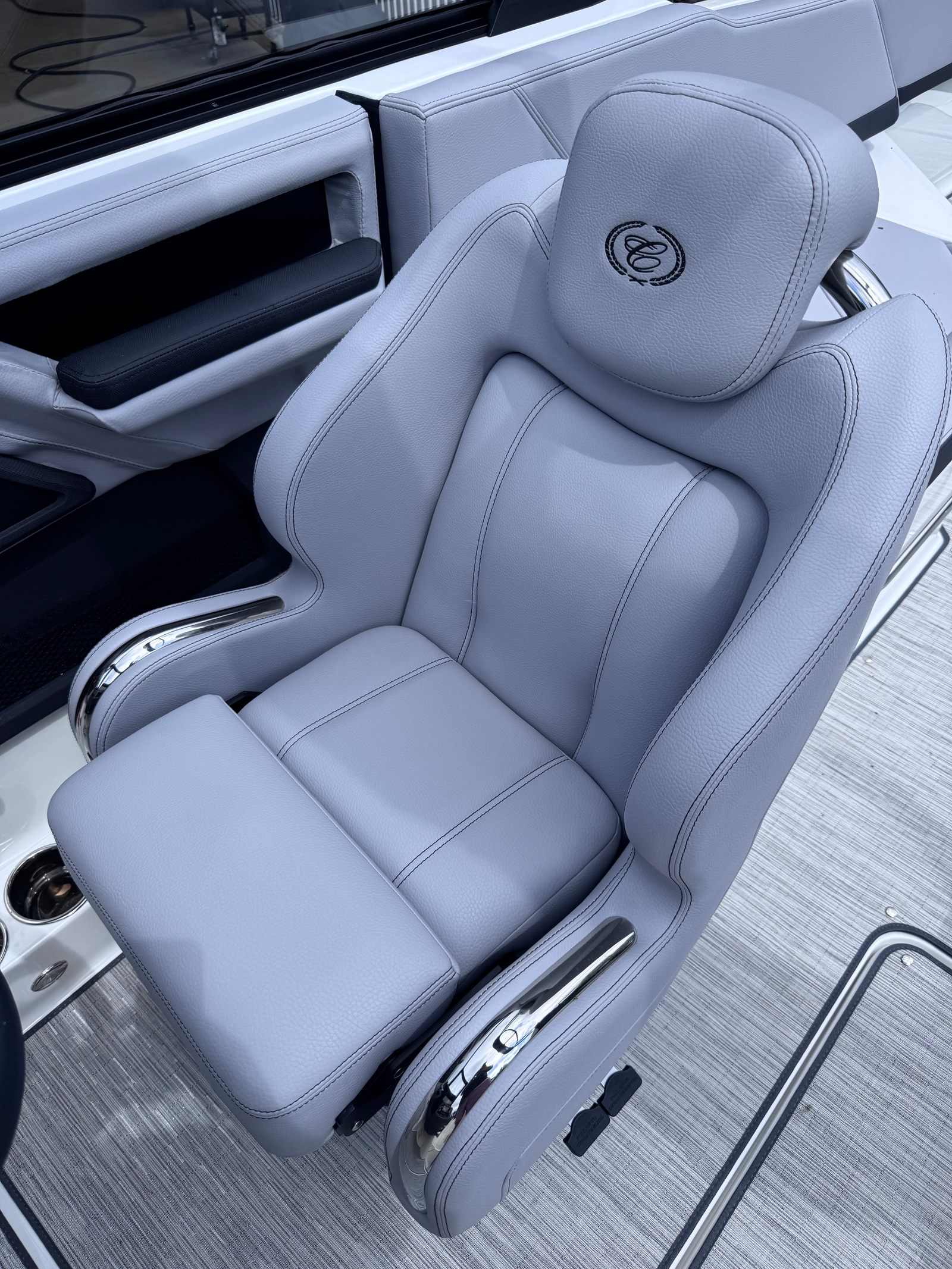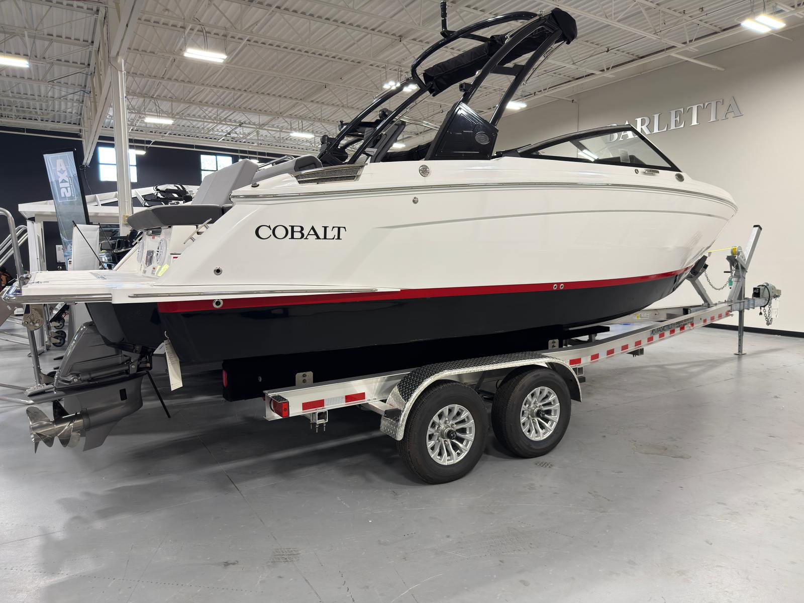 The Cobalt R6 is loaded with premium features designed to elevate your boating experience. Distinctive Conalt letters and a sophisticated Black Satin exterior create a bold and elegant presence on the water. Step aboard to discover the Frost and Slate interior, which offers a refined and inviting atmosphere for you and your guests. Stainless steel docking lights provide enhanced visibility and safety during evening arrivals and departures, while the glass cockpit with dual Garmin 8610 displays delivers cutting-edge navigation and control at your fingertips.The folding aluminum arch in black, paired with a Bimini top in Ebony, adds both style and functionality, offering shade and protection from the elements. Stay connected and powered up with the wireless phone charger and holder, ensuring your devices are always ready for action. LED interior accent lighting with customizable R/G/B colors creates a vibrant ambiance for any occasion, from lively parties to relaxing twilight cruises.Protect your investment with the included mooring cover, and enjoy the convenience of a folding arch for easy storage and transport. The battery maintainer/charger (110V) keeps your systems ready to go, while the premium sound system with transom speakers and remote lets you set the perfect soundtrack for your day on the water.
