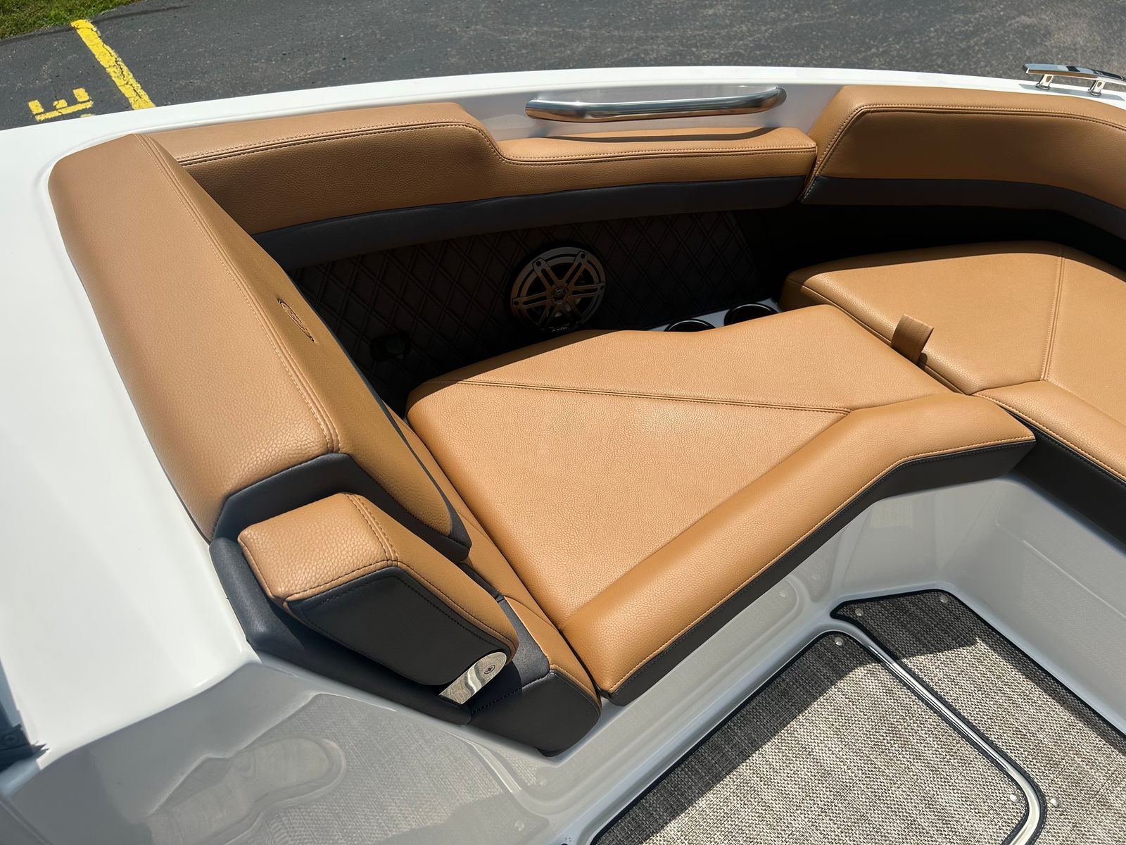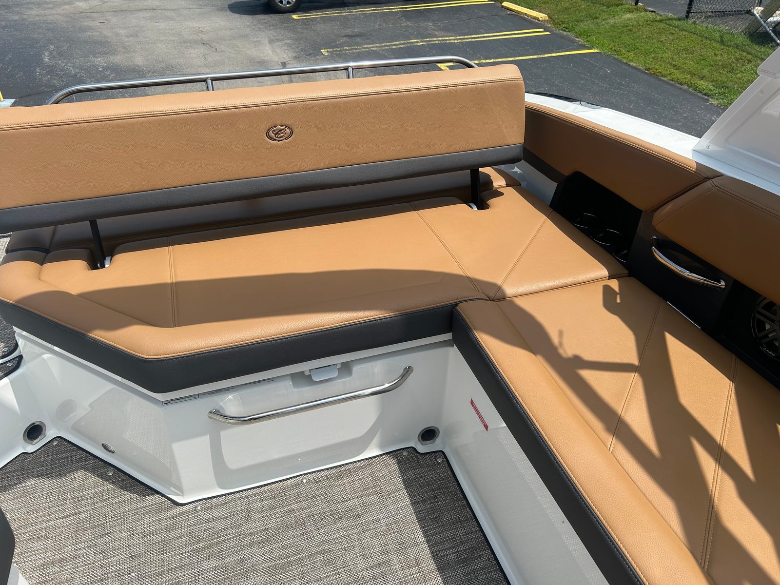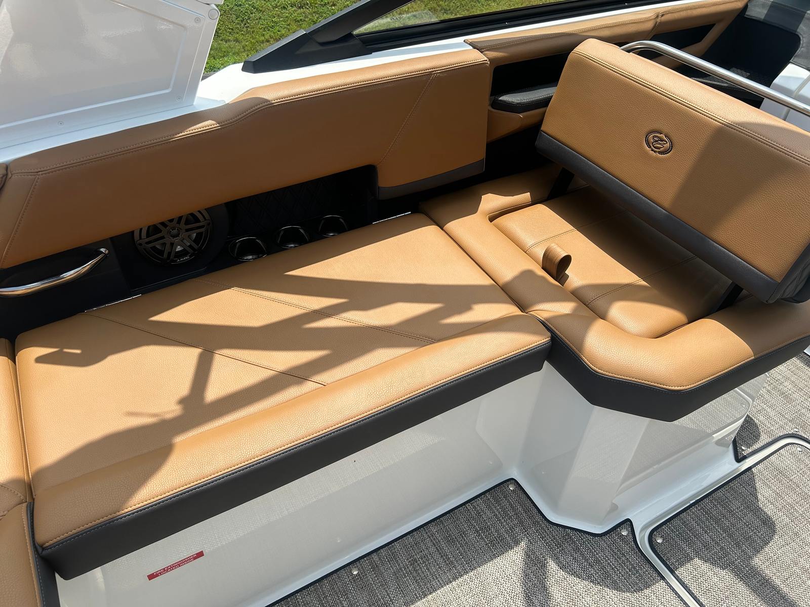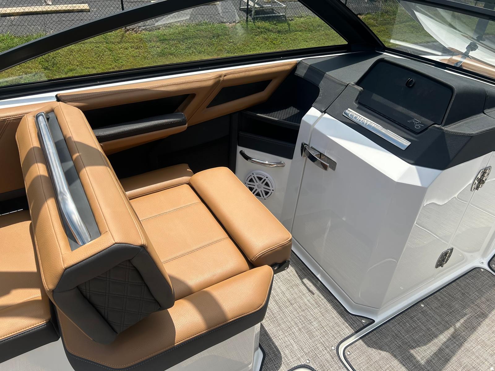 The Cobalt R6 Bowrider is designed with practicality in mind, making ownership easy and enjoyable. The spacious deck and smart storage solutions allow you to bring along all your gear, from water toys to picnic supplies. The efficient Volvo V8 engine offers excellent fuel economy, reducing operating costs and maximizing your time on the water. The battery maintainer/charger keeps your boat’s systems in top condition, so you’re always ready for spontaneous adventures.Docking is a breeze thanks to the responsive dual-propeller drive and stainless steel docking lights, ensuring safe and stress-free arrivals at any marina or dock. The durable Seagrass floor covering is easy to clean and maintain, while the folding arch and bimini provide versatile protection from the elements. Whether you’re planning a day trip or an extended outing, the R6’s thoughtful design makes every aspect of boating more enjoyable.