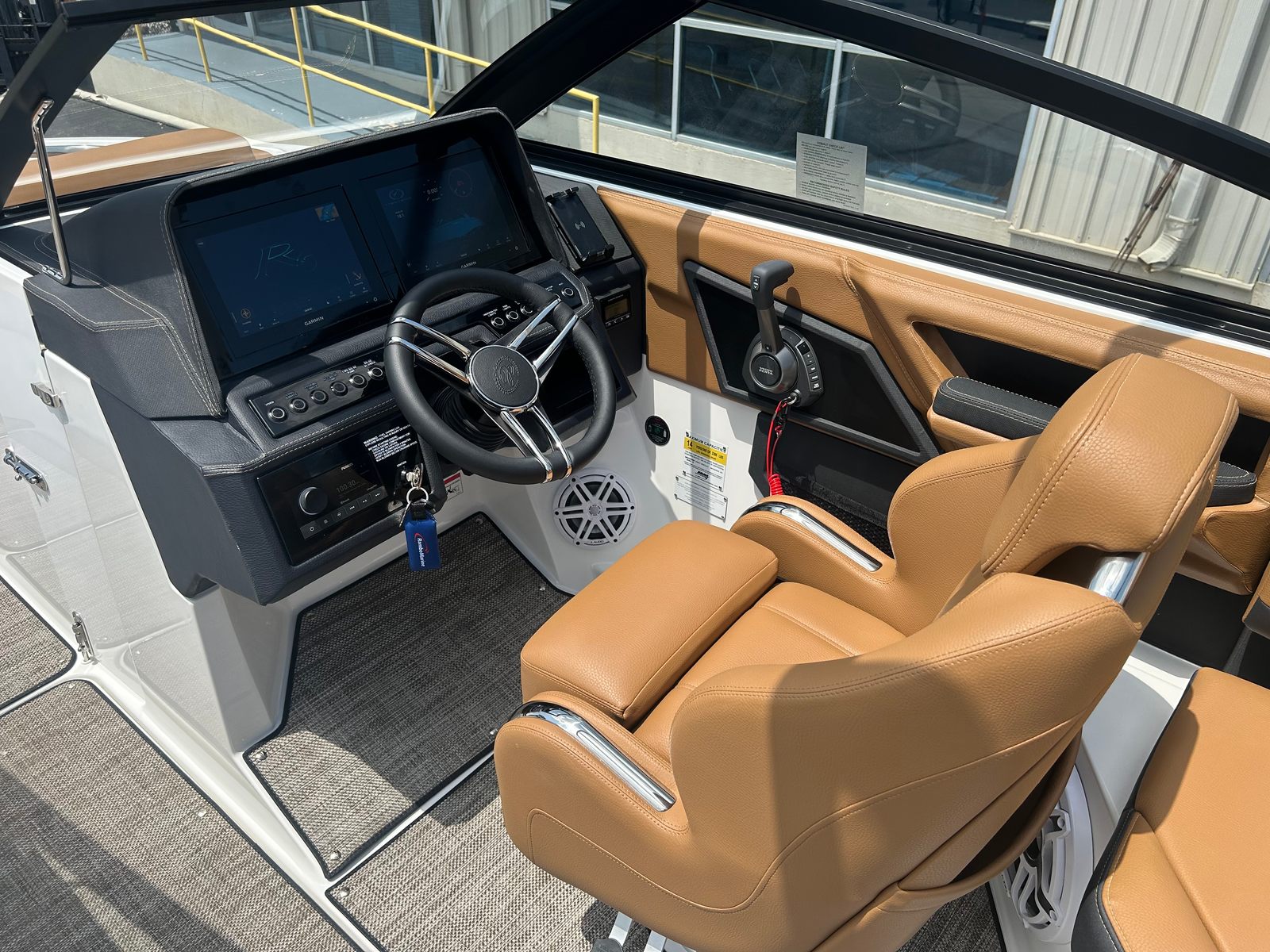 The 2026 Cobalt R6 Bowrider is packed with premium features designed to enhance your boating lifestyle. The Arch, E2 - White (Folding) with Bimini in Capt/Navy offers shade and protection from the sun, while adding a sporty touch to the boat’s silhouette. The interior showcases a sophisticated Caramel/Carbon color scheme, creating a warm and inviting atmosphere for passengers. Stainless steel docking lights provide enhanced visibility and safety during evening outings, while the Cobalt Letters in White Satin add a touch of elegance to the exterior.Step onto the boat and enjoy the comfort of the Seagrass floor covering in Raw Umber, which is both stylish and practical for wet environments. The Glass Cockpit features dual Garmin 8610 displays, offering advanced navigation, system monitoring, and entertainment options at your fingertips. The battery maintainer/charger (110V) ensures your boat is always ready for action, keeping essential systems powered and maintained. Every detail of the R6 is designed to maximize convenience, safety, and enjoyment on the water.