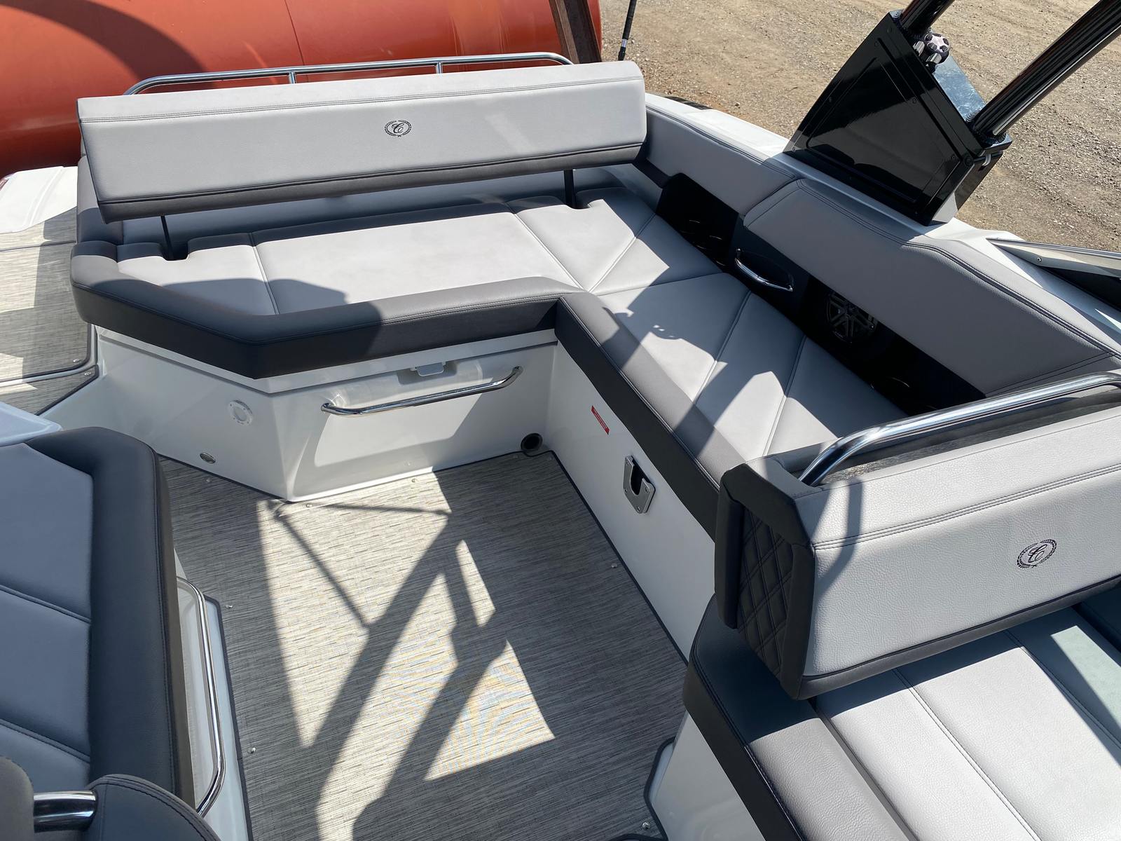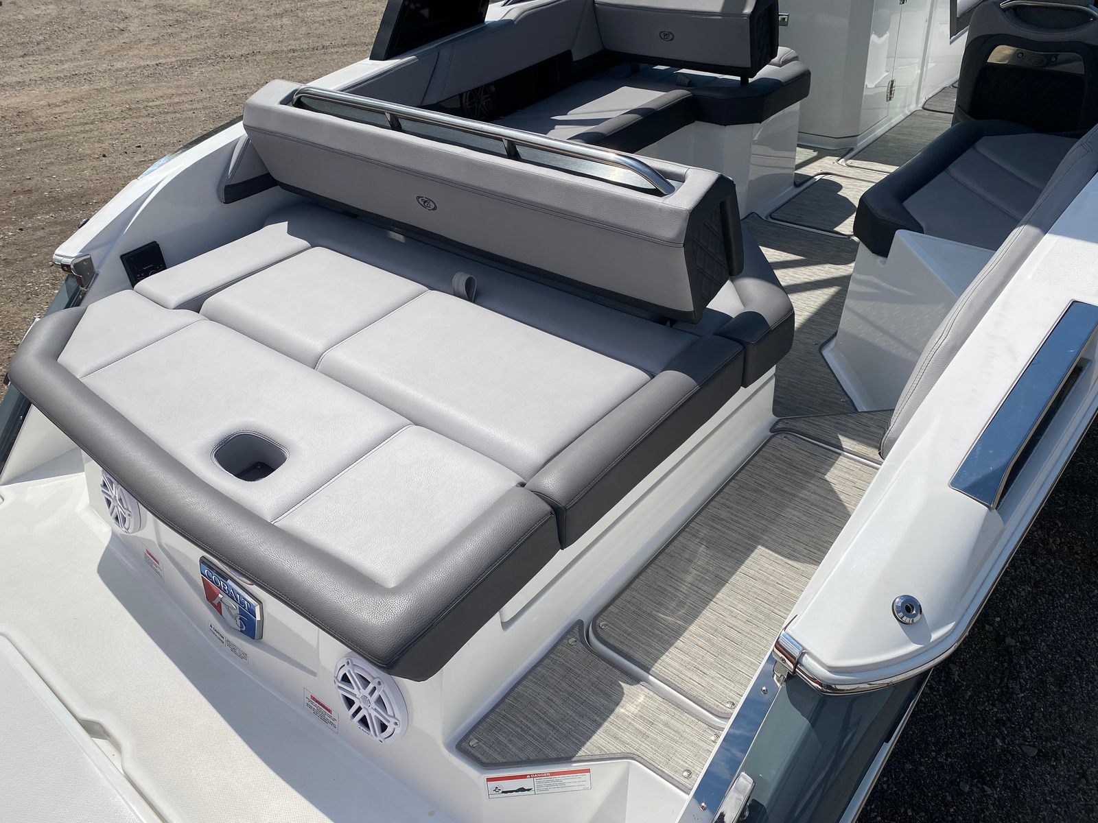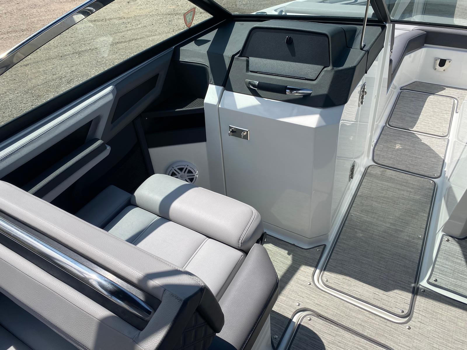 The Cobalt R6 is packed with features that enhance every aspect of your boating experience. The spacious bowrider layout offers generous seating, allowing guests to relax and socialize in comfort. The 25-foot length provides ample room for family and friends, making it an ideal choice for group outings. The ergonomic helm is designed for intuitive control, giving the captain confidence and ease while navigating. Premium materials and attention to detail are evident throughout the boat, from the plush upholstery to the stylish accents that define the Cobalt brand.