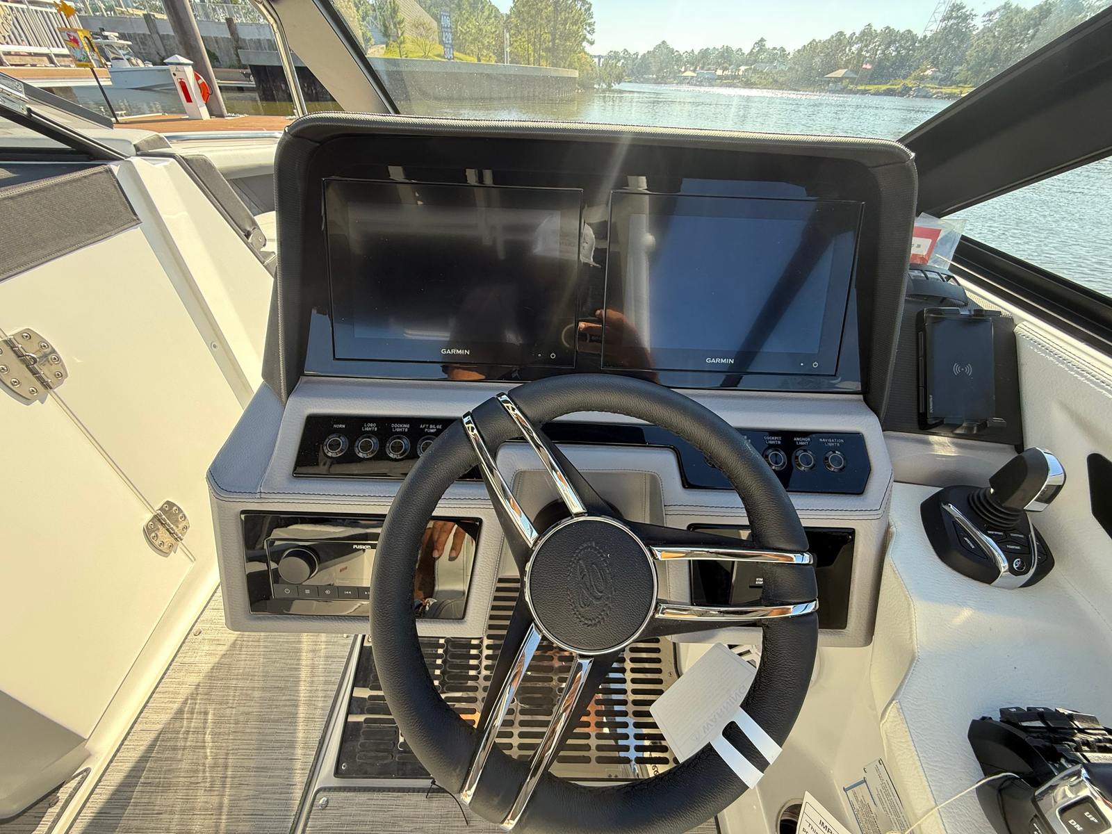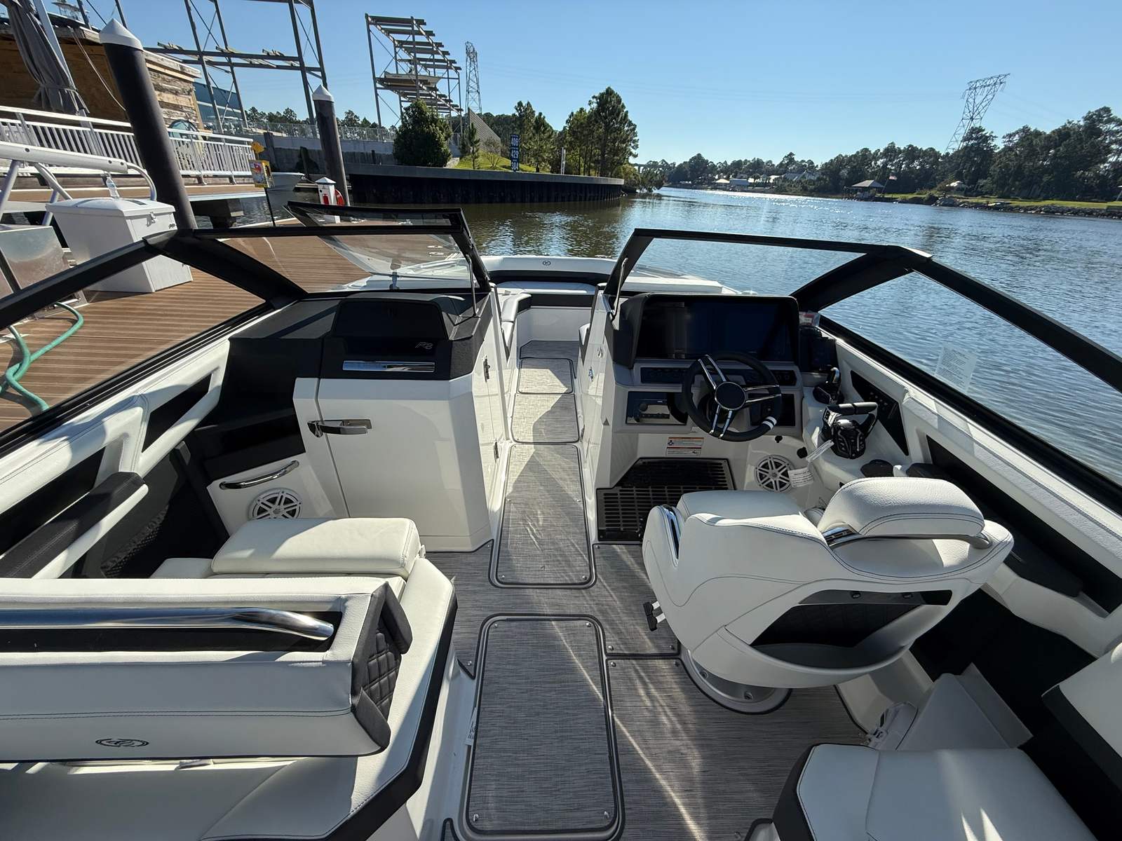 Power and precision are at the heart of the Cobalt R8 OB. Equipped with twin Yamaha F250XSB2 outboard engines in a striking white finish, this bowrider boasts a combined 500 horsepower. These engines are renowned for their reliability, smooth operation, and impressive acceleration, ensuring you have all the power you need for exhilarating rides and effortless cruising. The dual-engine setup not only enhances performance but also provides added maneuverability and control, making docking and navigating tight spaces a breeze. Whether you are looking to reach your favorite cove quickly or enjoy a leisurely day on the water, the R8 OB delivers a dynamic and responsive boating experience.