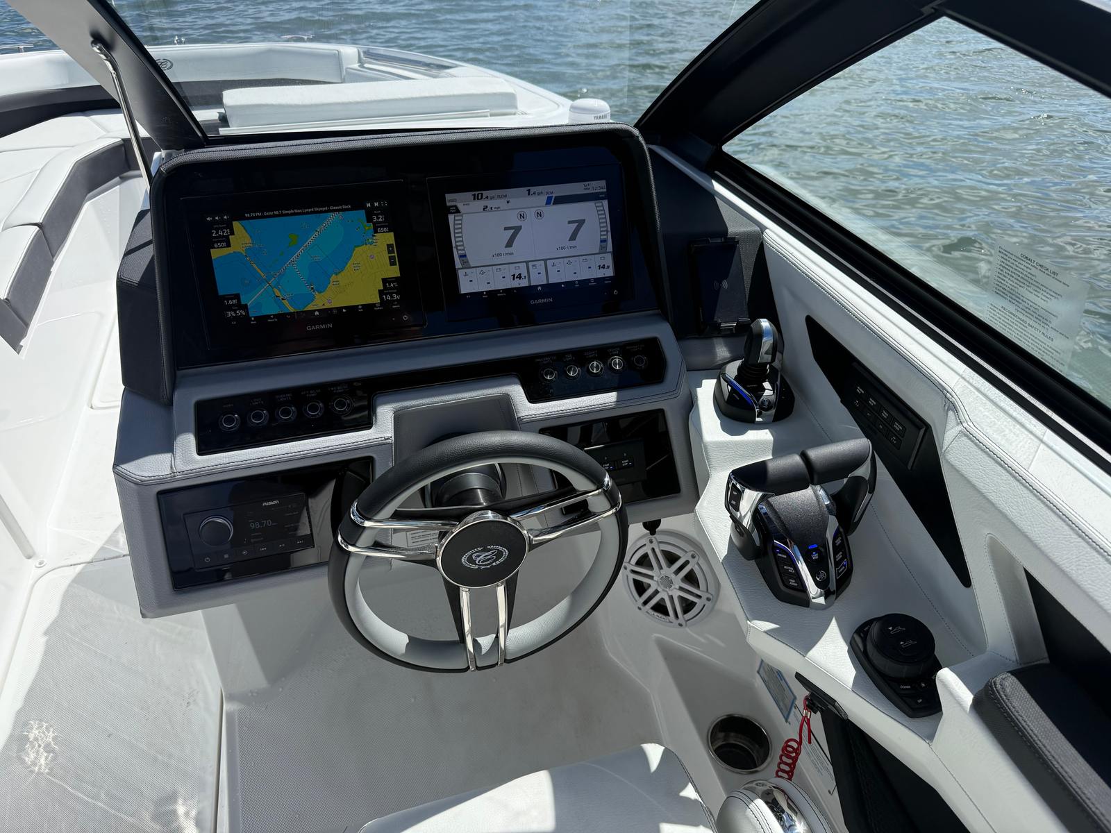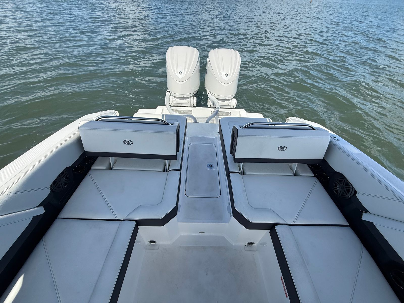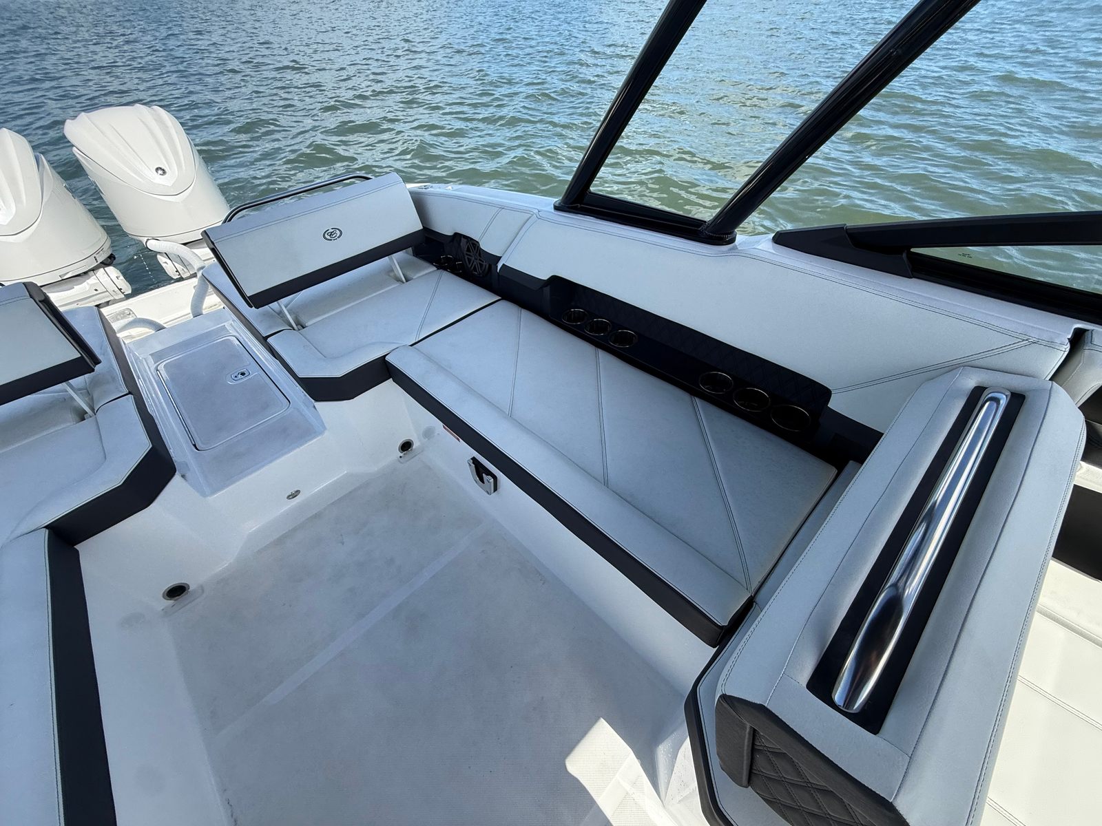 Practicality meets luxury in the Cobalt R8 OB. The ample storage options allow you to bring along everything you need for a day on the water, from water toys to picnic supplies. The ease of docking, thanks to the responsive twin engines and stainless steel docking lights, means you can confidently navigate marinas and tight spaces. The battery charger and engine flush system simplify maintenance, so you can spend more time enjoying your boat and less time worrying about upkeep.The board ladder makes swimming and water sports more accessible, while the protective covers keep your boat looking pristine year after year. Every feature is designed with your convenience in mind, making ownership of the R8 OB as enjoyable as the adventures you’ll have on it.