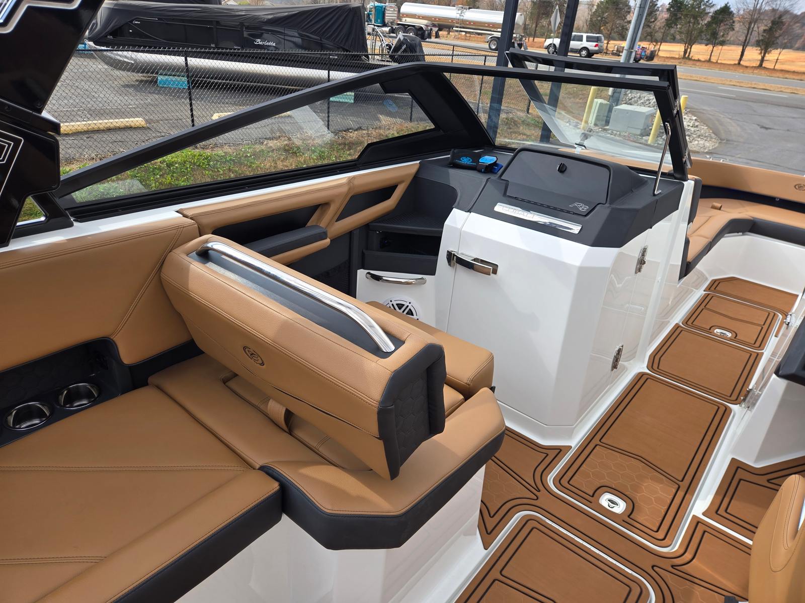 The 2026 Cobalt R8 Surf is loaded with premium features that set it apart from other bowriders. The interior showcases a sophisticated palette of Caramel, Carbon, and Ebony, creating a warm and inviting atmosphere for you and your guests. The Cobalt Letters in White Satin add a touch of elegance and brand distinction. Stainless steel docking lights enhance visibility and safety during evening outings, while the Black EL Arch, Prisma (Folding) with Ebony Bimini, provides both style and shade for sunny days.The glass cockpit is equipped with dual Garmin 8610 displays, offering state-of-the-art navigation and control at your fingertips. The head with pump-out porta potti adds convenience for longer trips, ensuring comfort for everyone on board. LED interior accent lighting in customizable red, green, and blue hues sets the perfect mood for any occasion. The mooring cover, paired with the Prisma folding arch, protects your investment and makes storage a breeze. A battery maintainer/charger (110V) ensures your boat is always ready for action, keeping your systems powered and reliable.